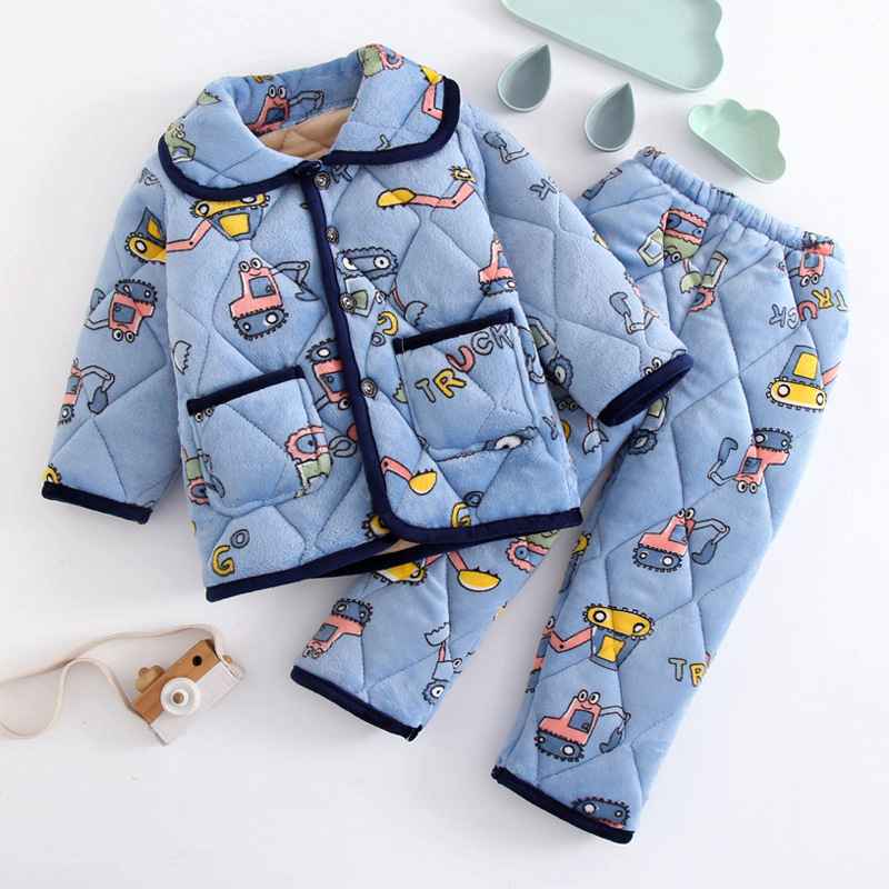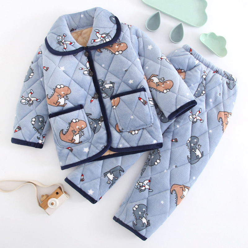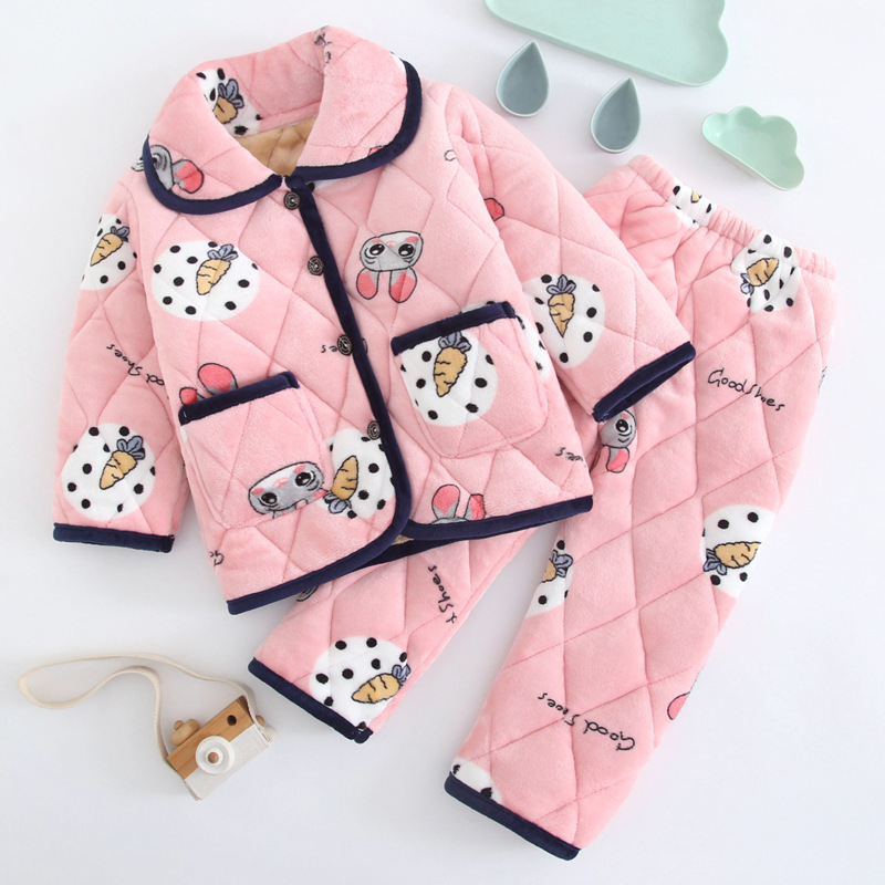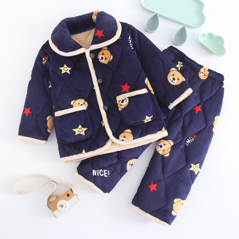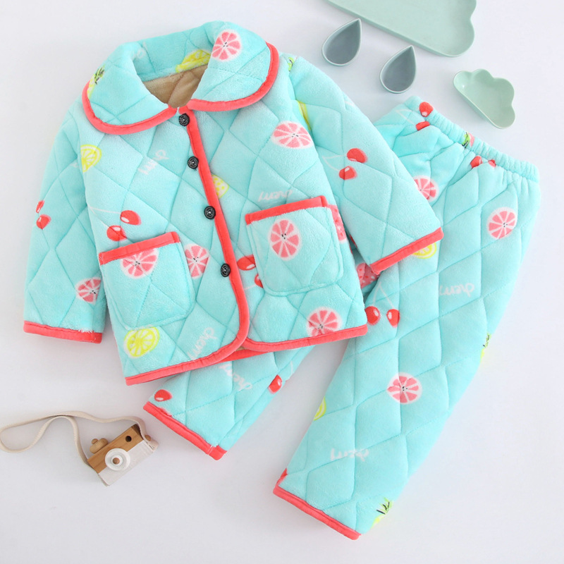 두꺼운 플란넬 소년과 소녀 산호 양털 가정 옷을 기모 겨울 어린이 3 층 누비 이불 잠옷 세트