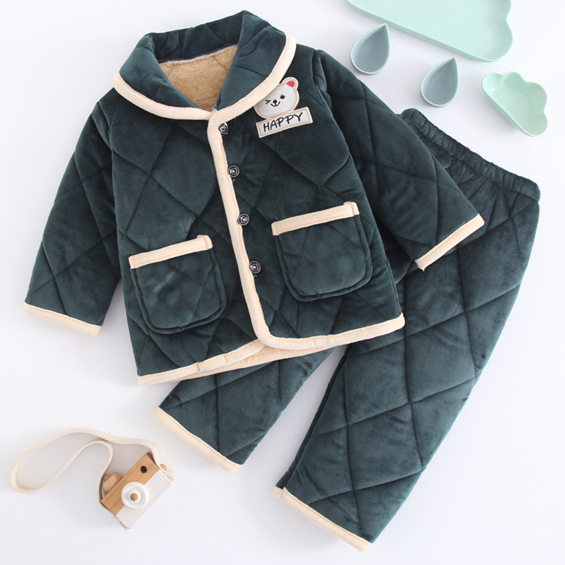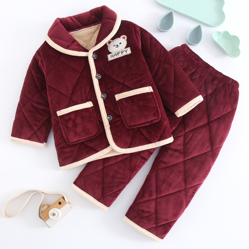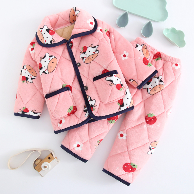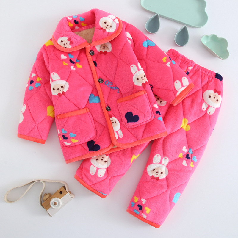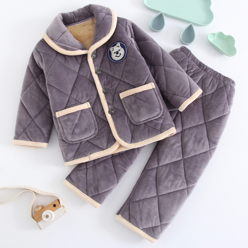 두꺼운 플란넬 소년과 소녀 산호 양털 가정 옷을 기모 겨울 어린이 3 층 누비 이불 잠옷 세트