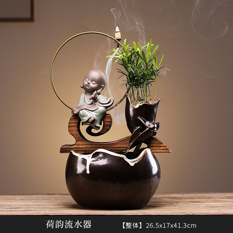 흐르는 물 장식품 행운의 물 자동차 분수 거실 데스크탑 사무실 순환 세라믹 창조적 인 선 오프닝 선물