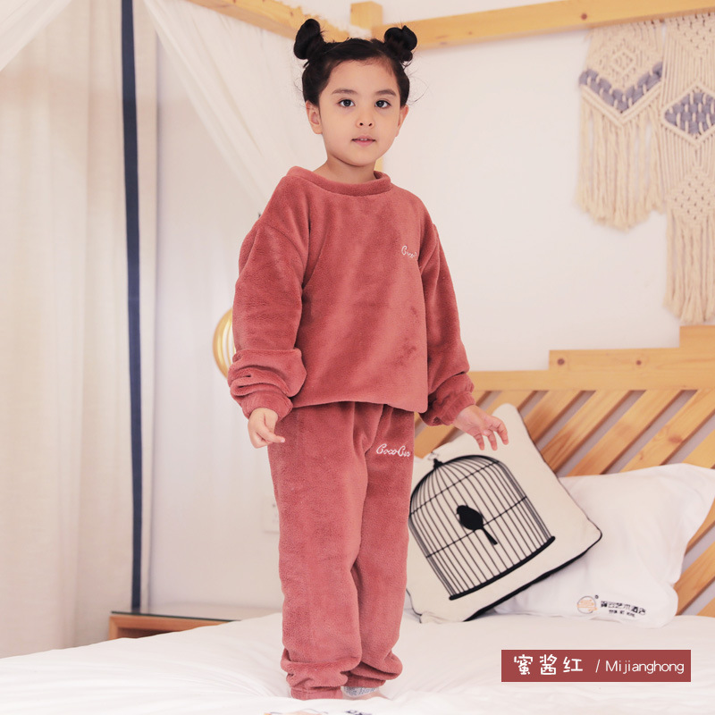가을과 겨울 새로운 요정 어린이 따뜻한 세트 패션 산호 양털 잠옷 세트 가정 의류 인터넷 연예인 신상품스토어 가기