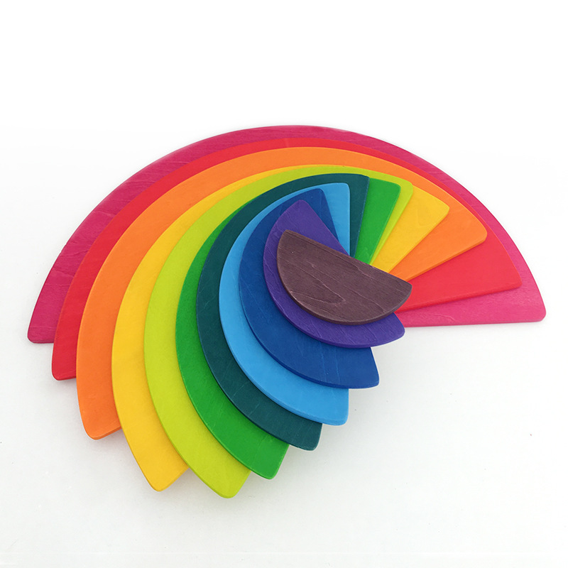 11 컬러 레인보우 반월 상 연골 레인보우 빌딩 블록 어린이 교육 유아 장난감 틸든 합판 스태킹 높은 몬테소리 교육 인식