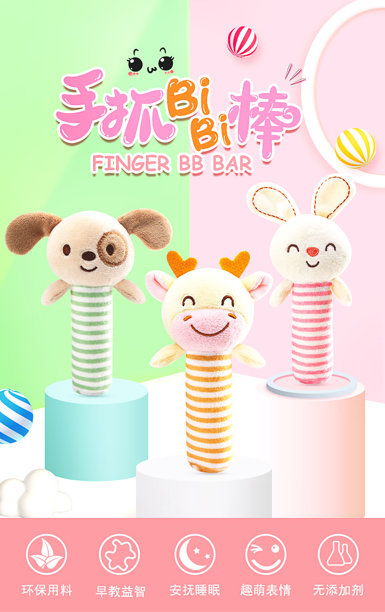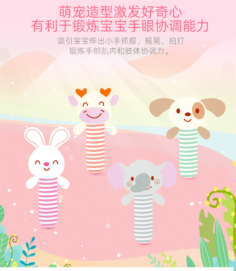 TOLOLO 아기 손 그립 딸랑이 스틱 훈련 아기 그립 능력 신생아 장난감 제조 업체 도매