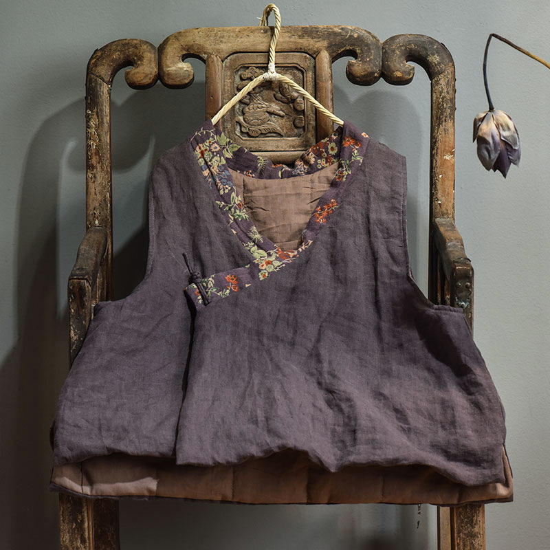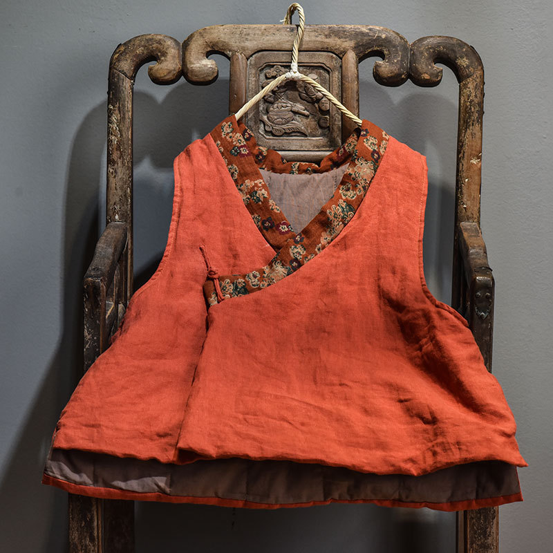 Shenyuan 국화/가을과 겨울 새로운면과 린넨 여성용 레트로 린넨 샌드 워시 스탠드 칼라 조끼 카디건 버클 코튼 조끼스토어 가기