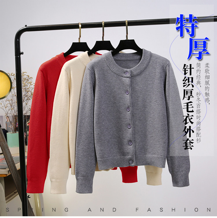 스웨터 코트 여자의 카디건 가을과 겨울 두꺼운 라운드 넥 느슨한 짧은 초대형 스웨터 플러스 사이즈 여자의 겉옷스토어 가기