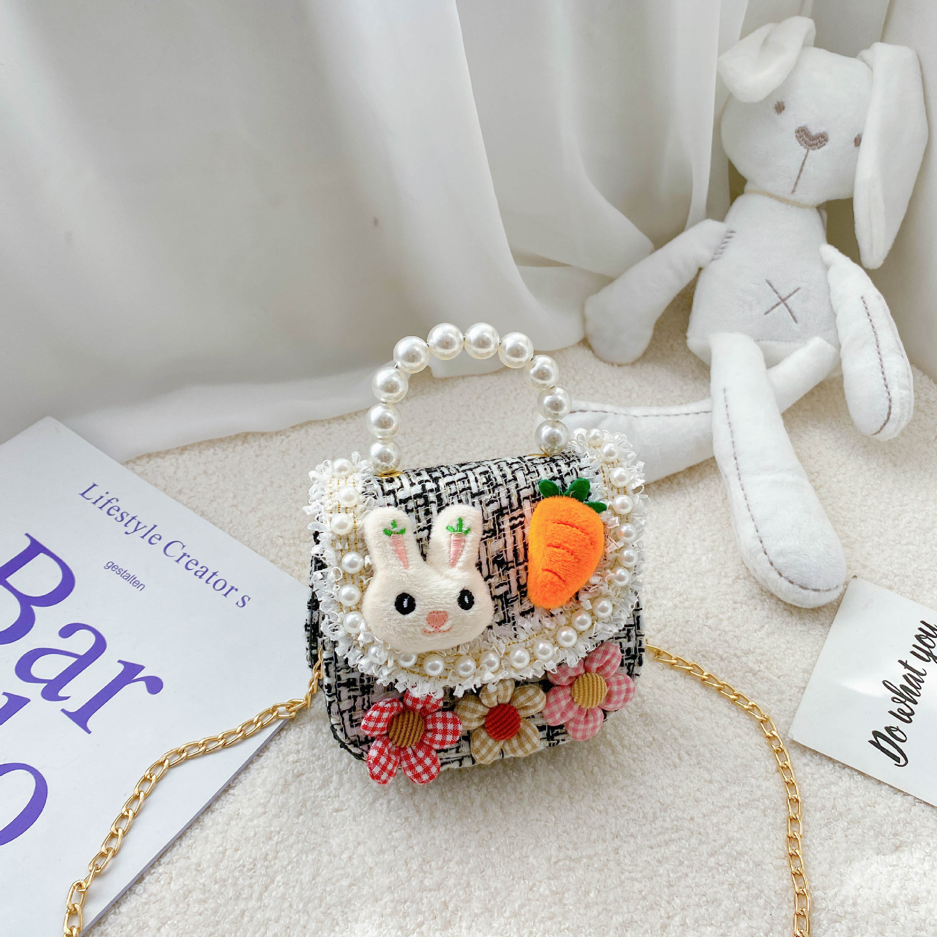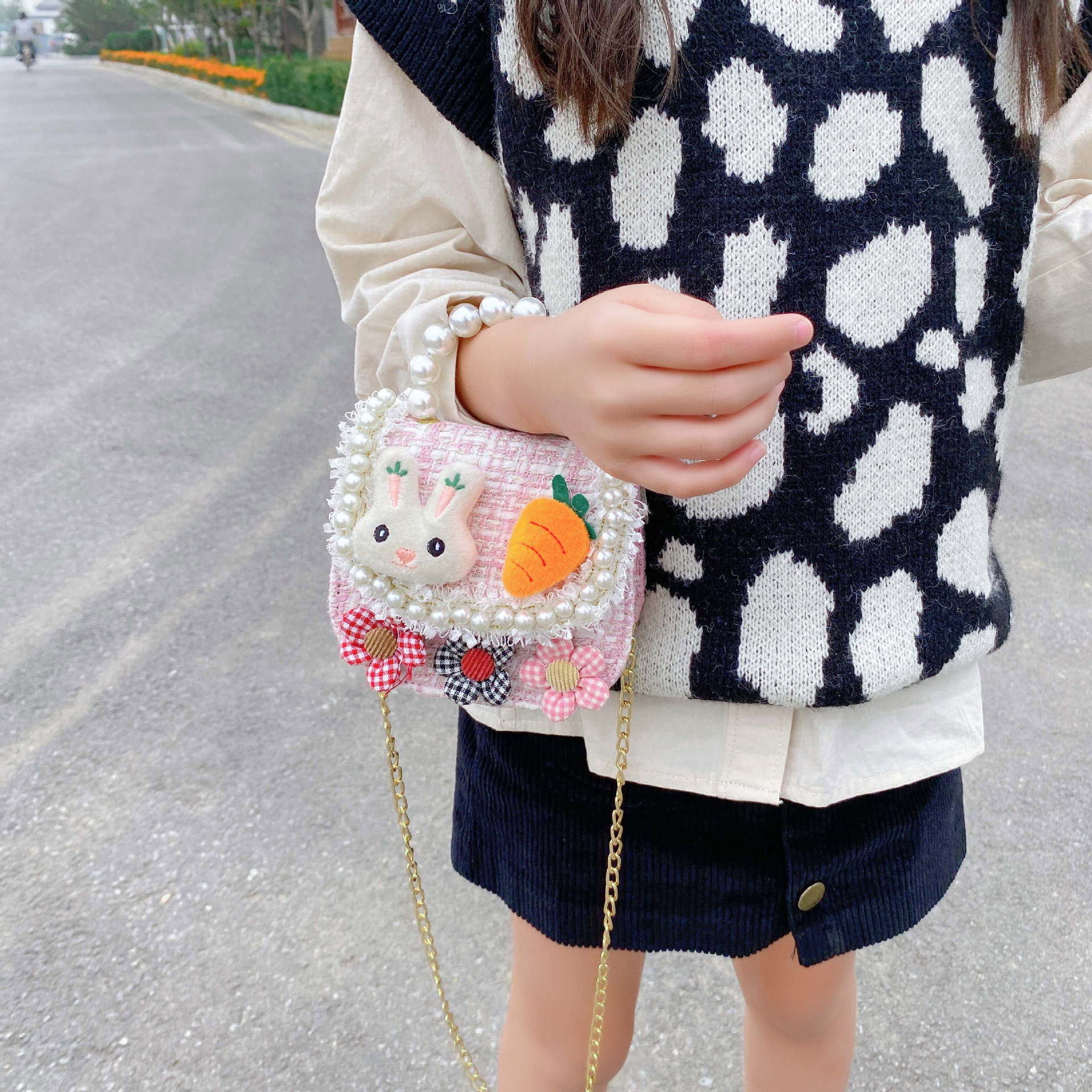 패션 어린이 가방 귀여운 꽃 아기 소녀 동전 지갑 면 린넨 만화 토끼 어린이 크로스 바디 가방