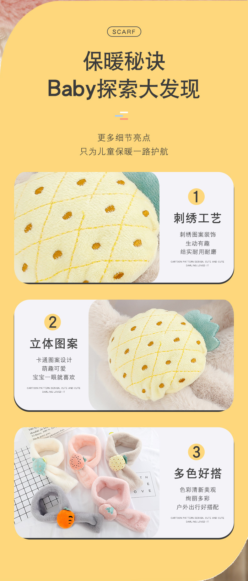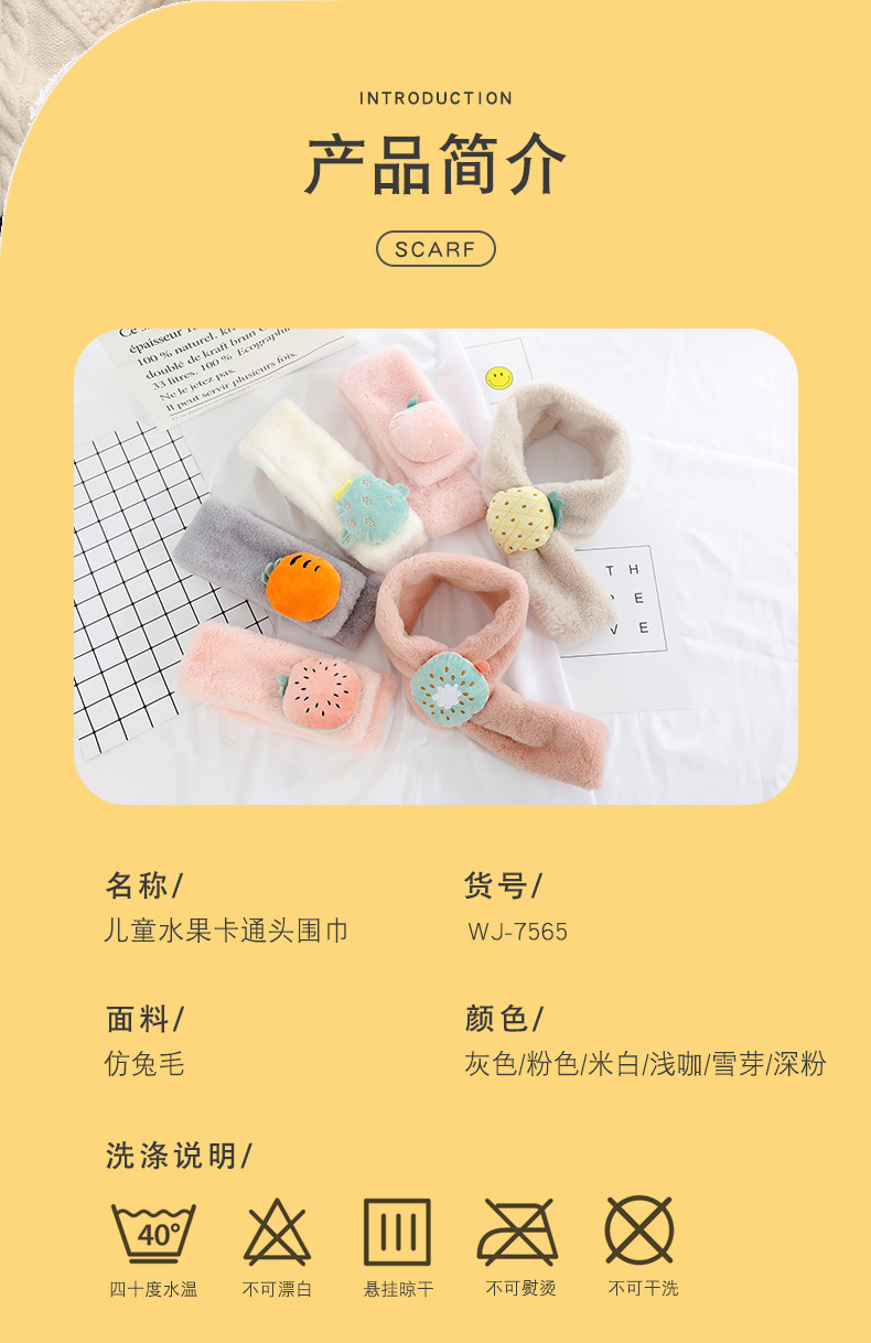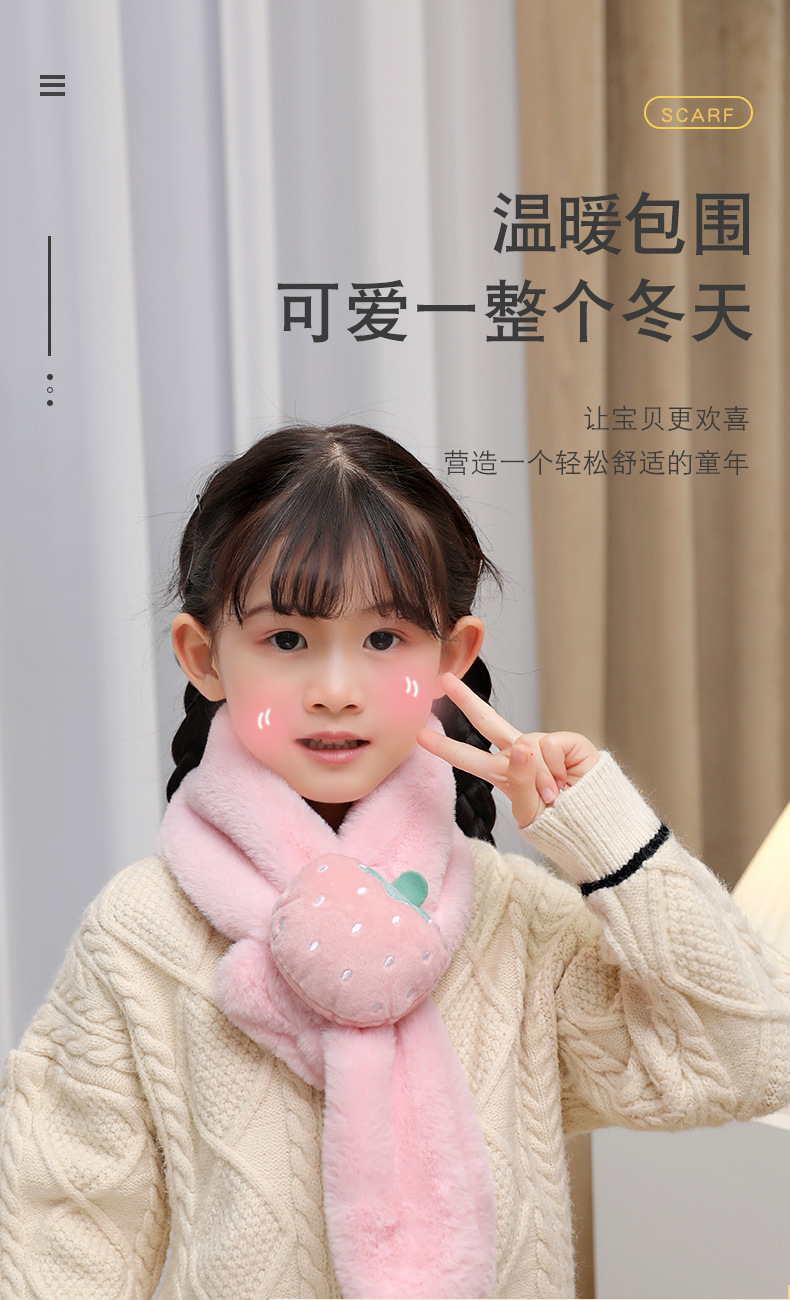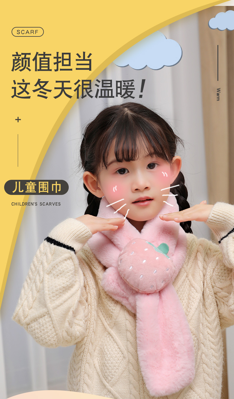 가을 겨울 어린이용 스카프 남녀공용 플러시 과일 스카프 겨울 보온 남아 여아 모조 토끼털 목도리 RY