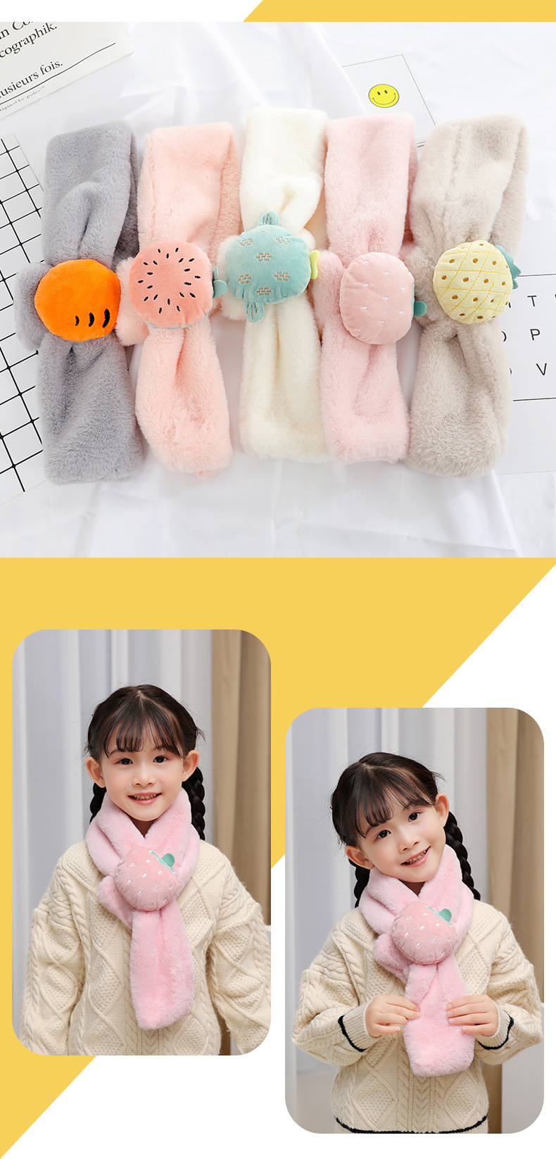 가을 겨울 어린이용 스카프 남녀공용 플러시 과일 스카프 겨울 보온 남아 여아 모조 토끼털 목도리 RY스토어 가기