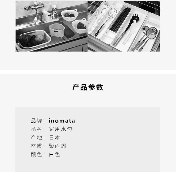 Inomata 일본 수입 두꺼운 플라스틱 숟가락 물 숟가락 욕실 아기 목욕 샴푸 숟가락 주방 화이트 워터 스푼