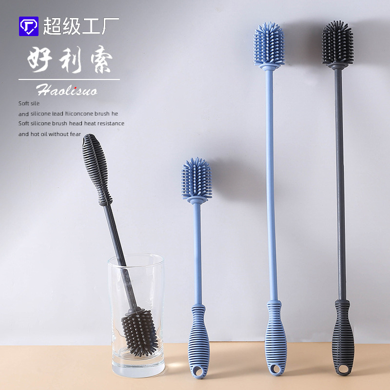 유아용 실리콘 젖병 브러시 세척 브러시 세트 젖꼭지 긴 손잡이 360 스펀지 긴 손잡이