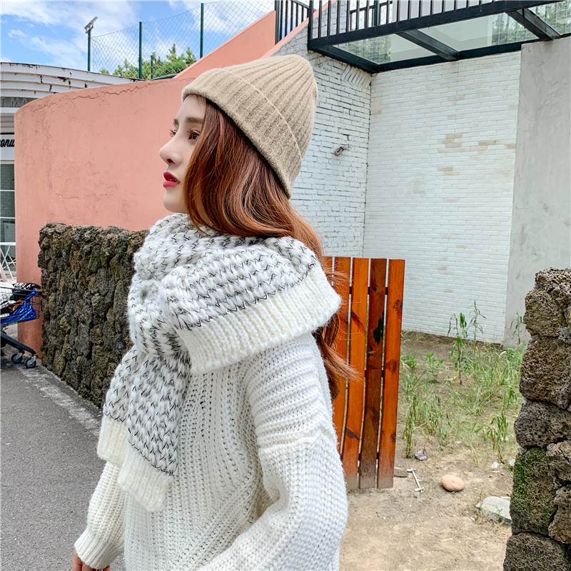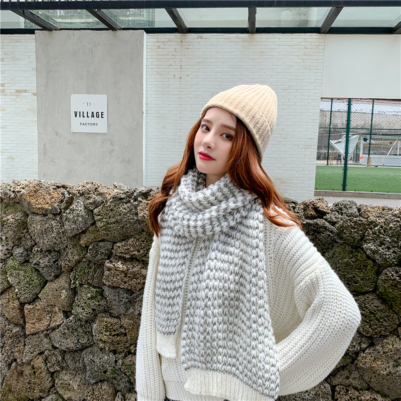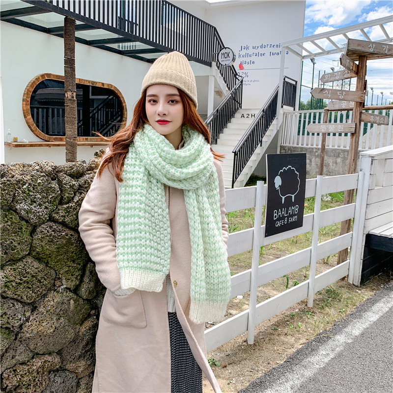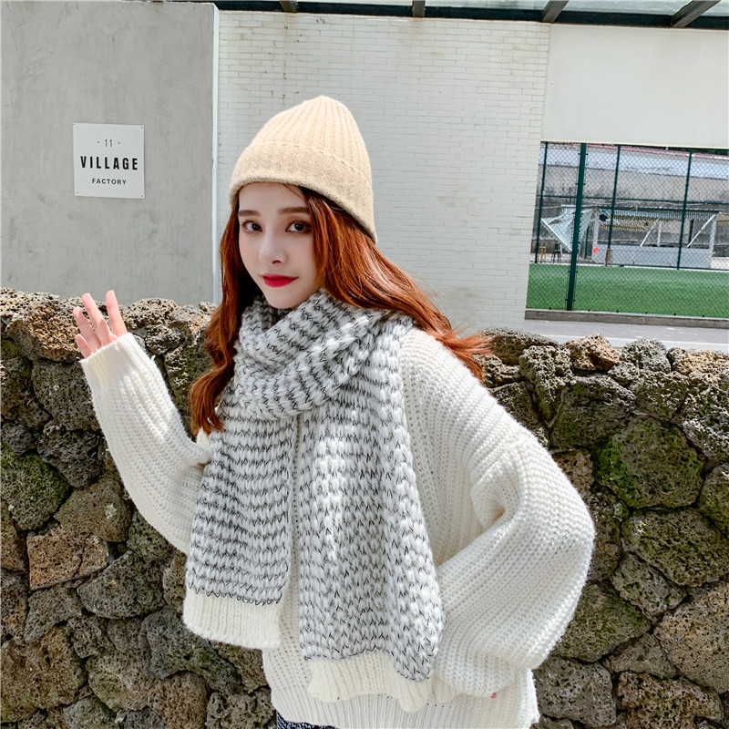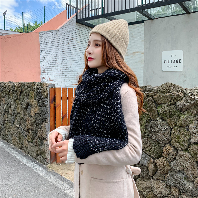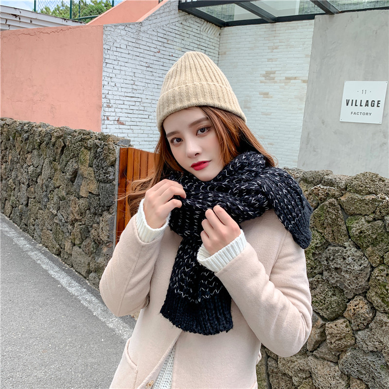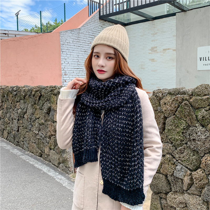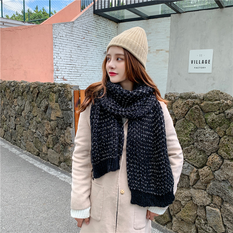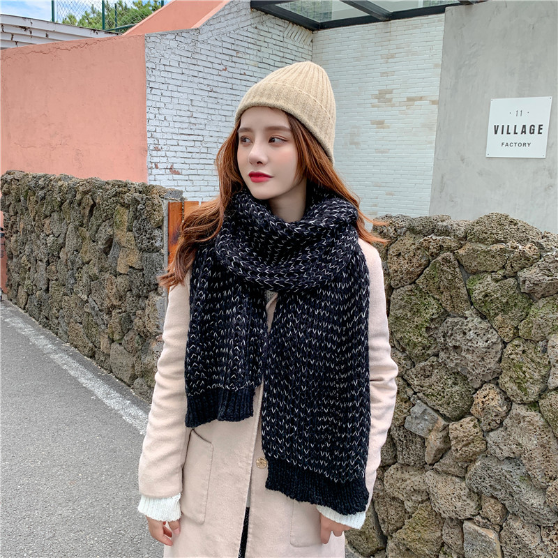 여성용 슈퍼 롱 두꺼운 한국 스타일 가을과 겨울 새로운 커플 스카프 남성용 니트 울 울 이중 사용 스카프스토어 가기