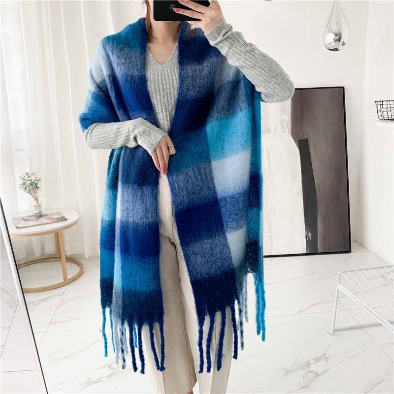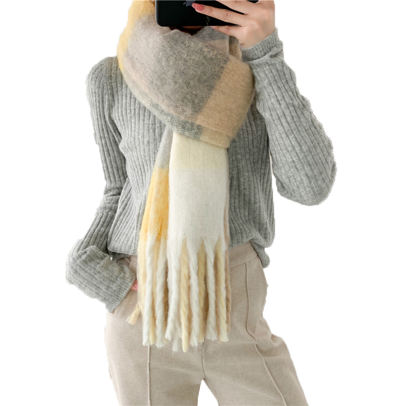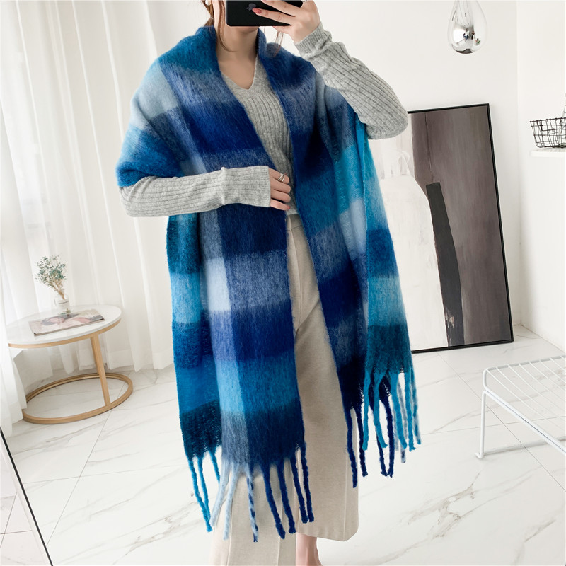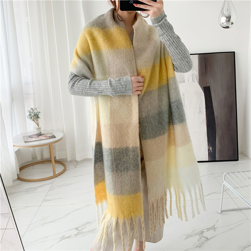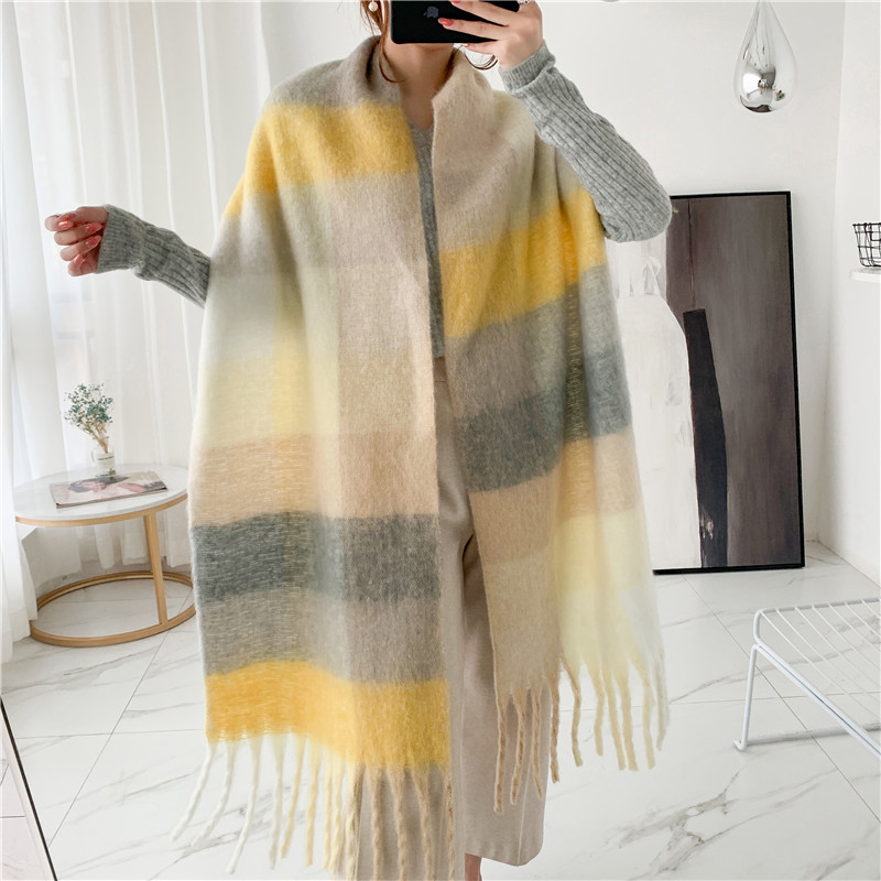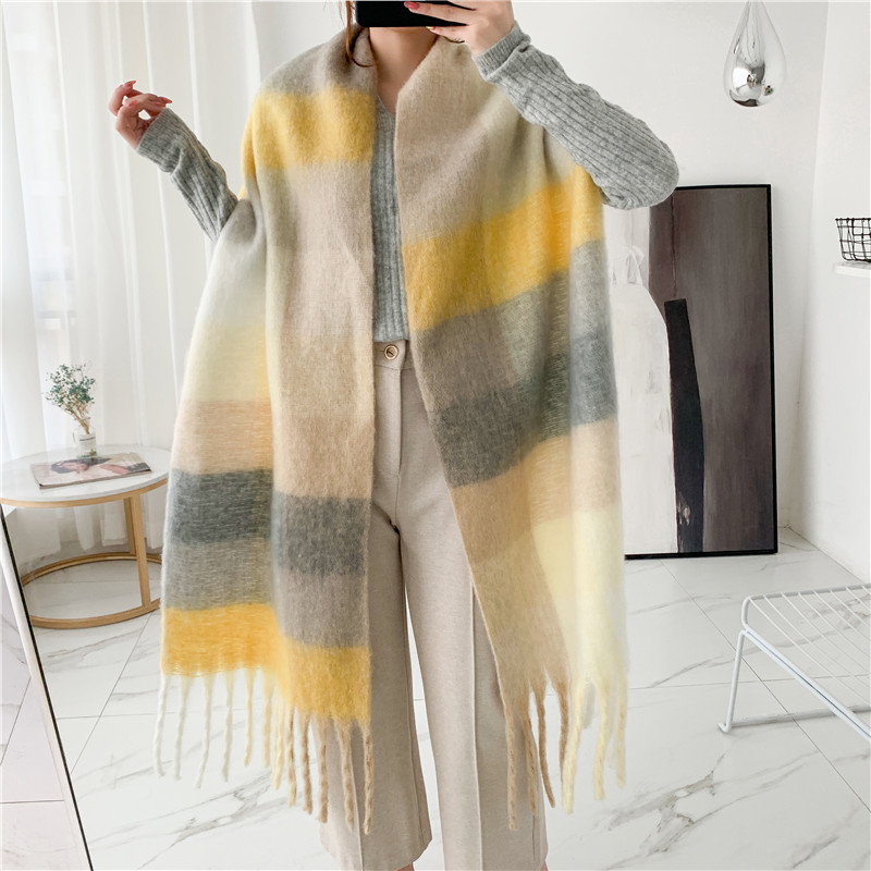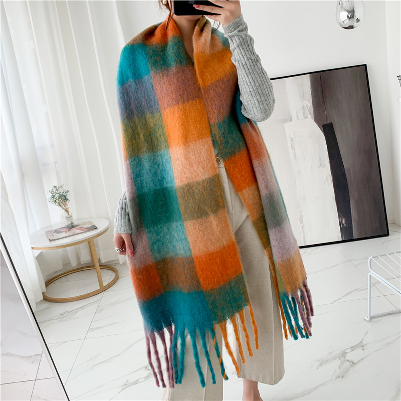 리안 케 컬러 두꺼운 브레이드 레인보우 격자 무늬 컬러 블록 스카프 겨울 캐시미어 술 우아한 숄 스카프 학생 여성