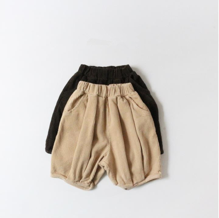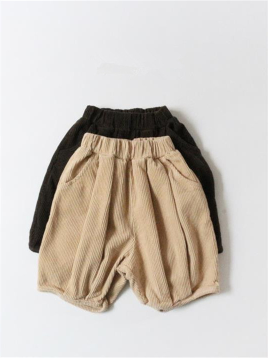 두꺼운 가을 여아 바지 어린이 반바지 한국 스타일 단색 코듀로이 루즈핏 아기 랜턴 팬츠 A급