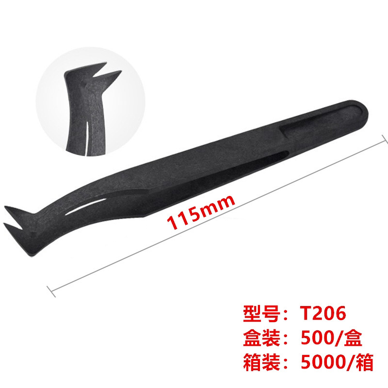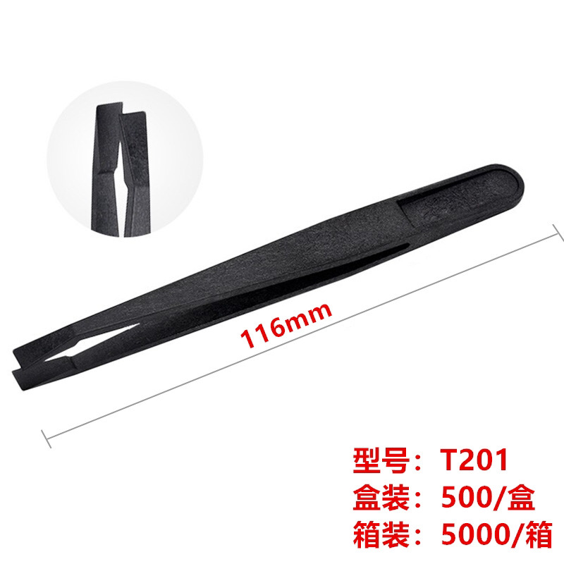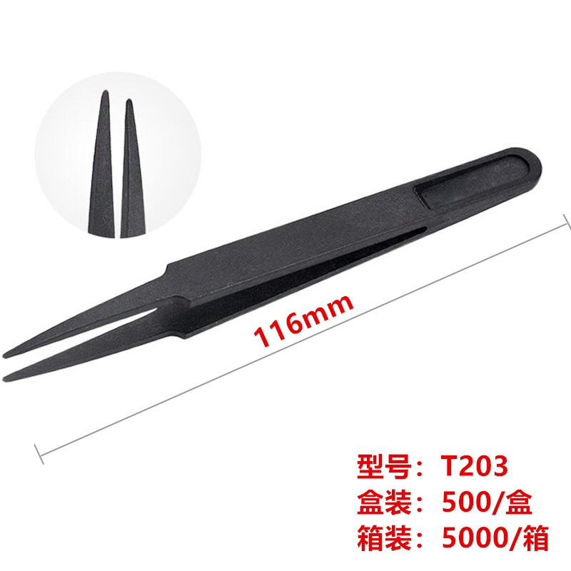 碳纤维塑料防弯头静电黑色塑料圆头尖头镊子平头扁嘴镊子镊子PC