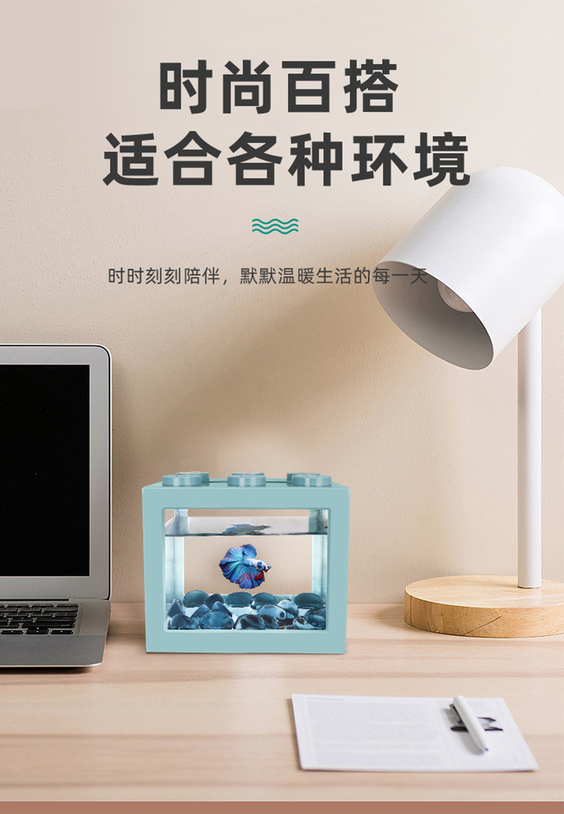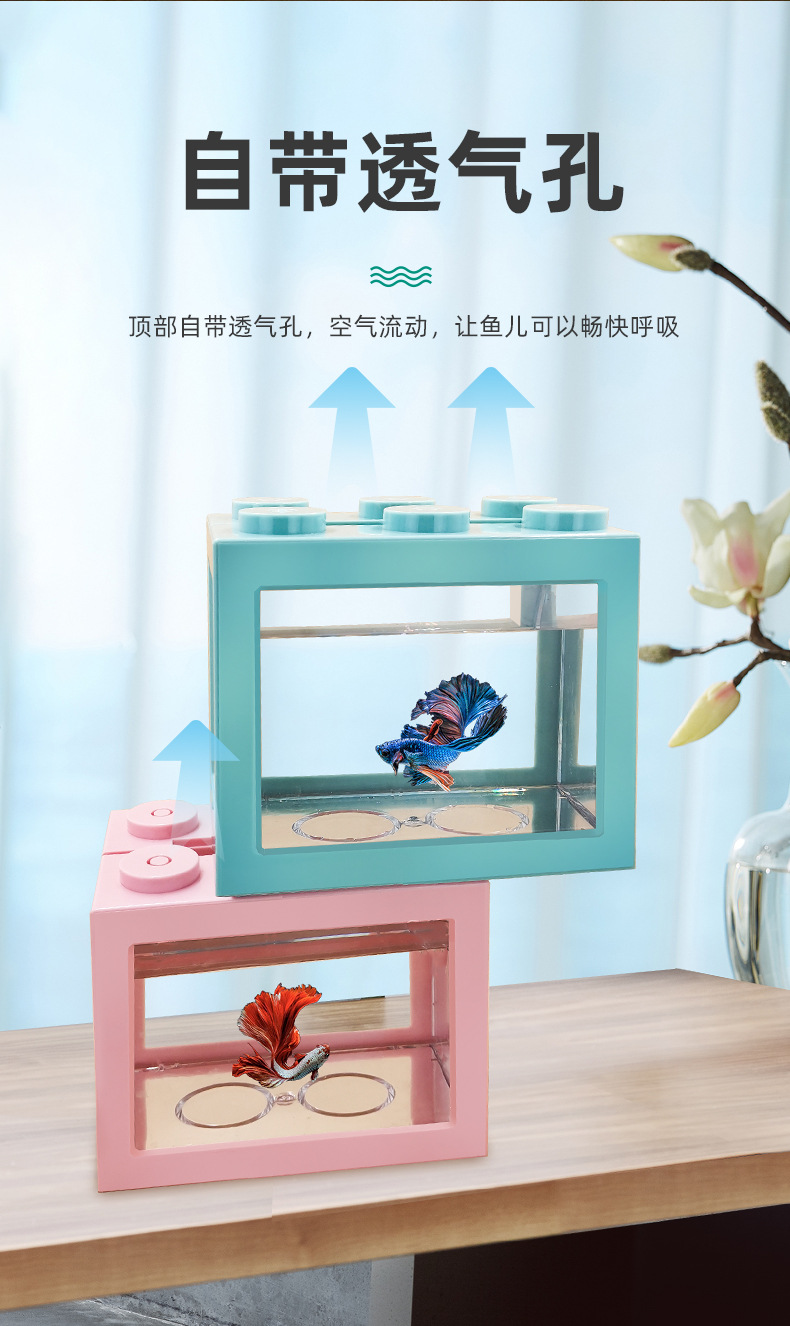 미니 작은 어항 아크릴 투명 빌딩 블록 양동이 어항 금붕어 탱크 데스크탑 창조적 인 조경 플라스틱 양동이 물고기 상자