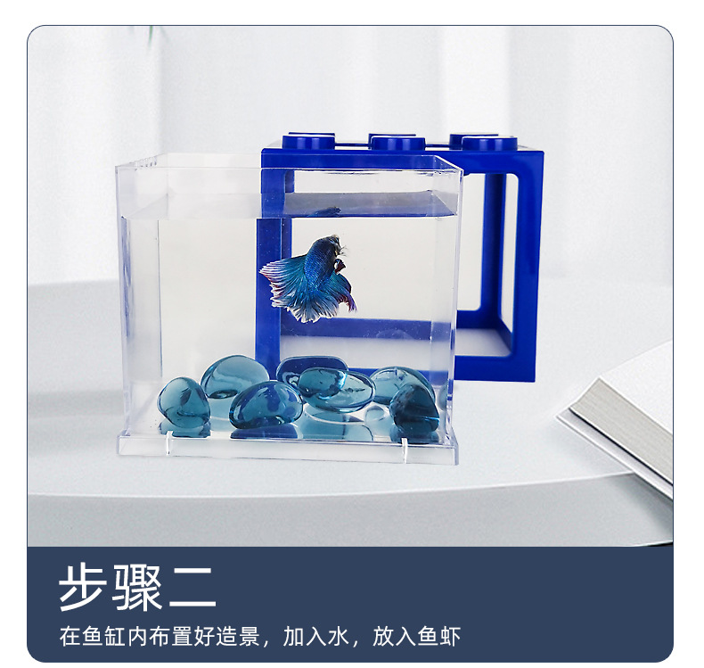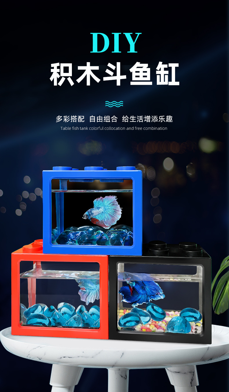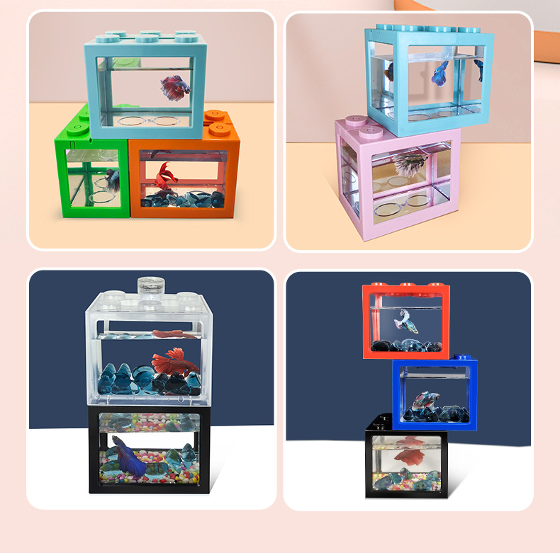 미니 작은 어항 아크릴 투명 빌딩 블록 양동이 어항 금붕어 탱크 데스크탑 창조적 인 조경 플라스틱 양동이 물고기 상자스토어 가기