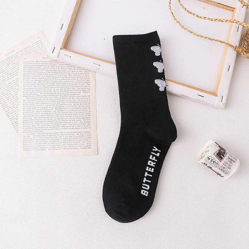 미드 튜브 양말 여성용 새로운 단색 흑백 나비 여성용 양말 거리 패션 애호가 양말 남성용 및 여성용 양말 조수 양말 도매스토어 가기