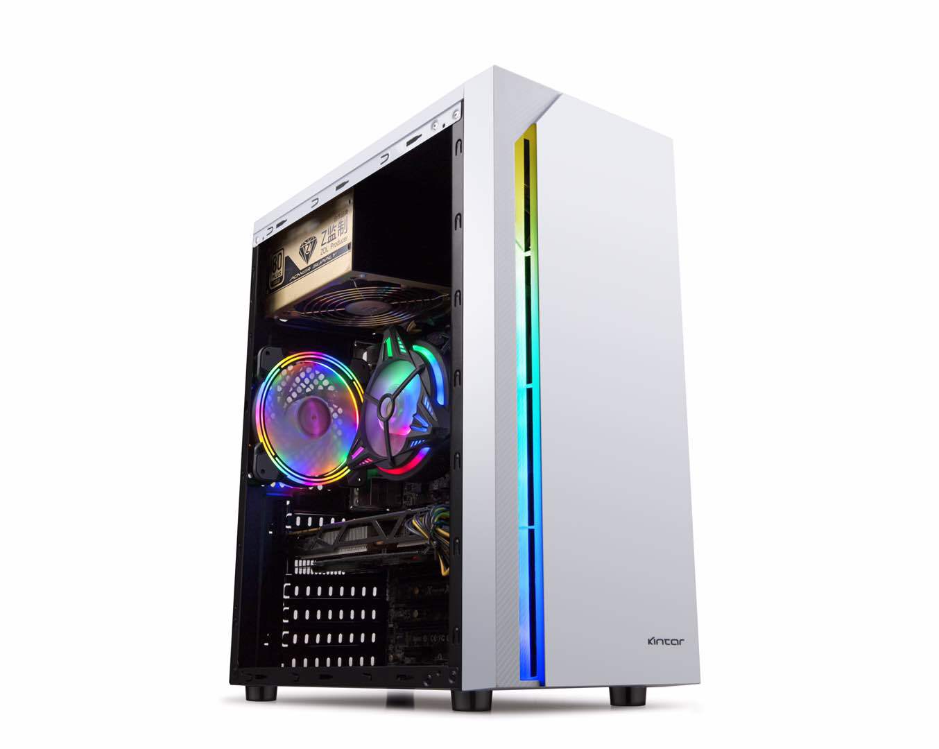 Jinda 데스크탑 PC 컴퓨터 메인 케이스 MATX 수냉식 e 스포츠 게임 케이스를 통해 다채로운 라이트 바 파노라마 측면스토어 가기
