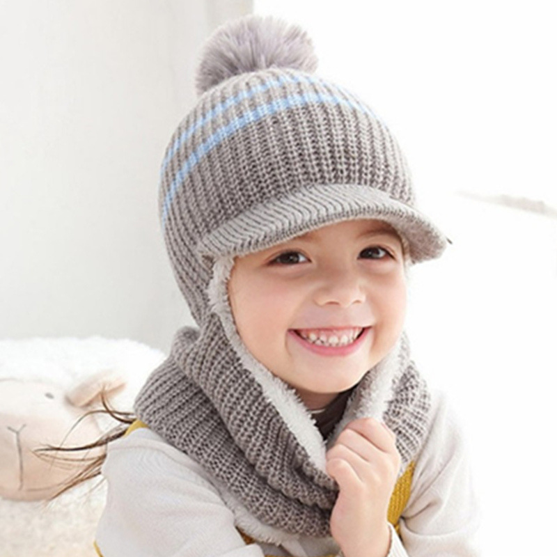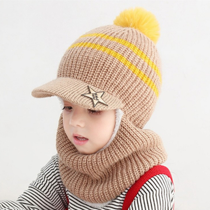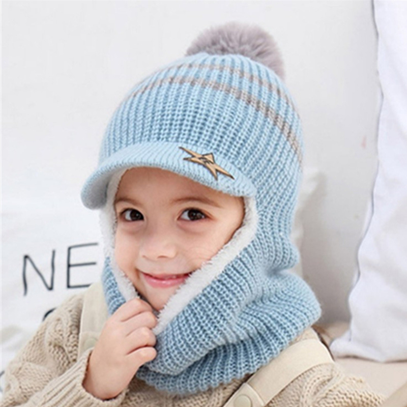 어린이 기모 올인원 모자 소년과 소녀를 위한 가을과 겨울 따뜻한 니트 모자 얼굴 보호 방풍 스카프 다섯개 별 모자스토어 가기