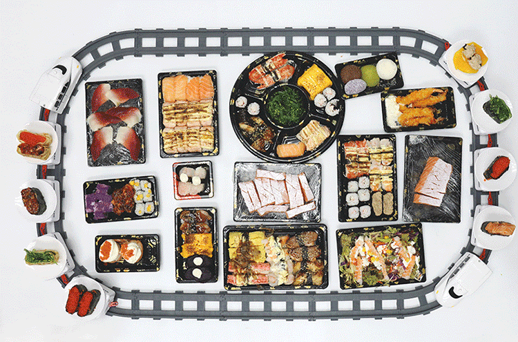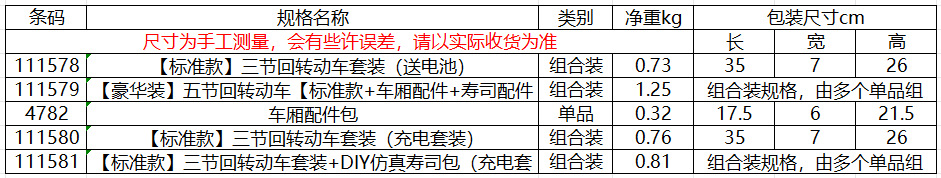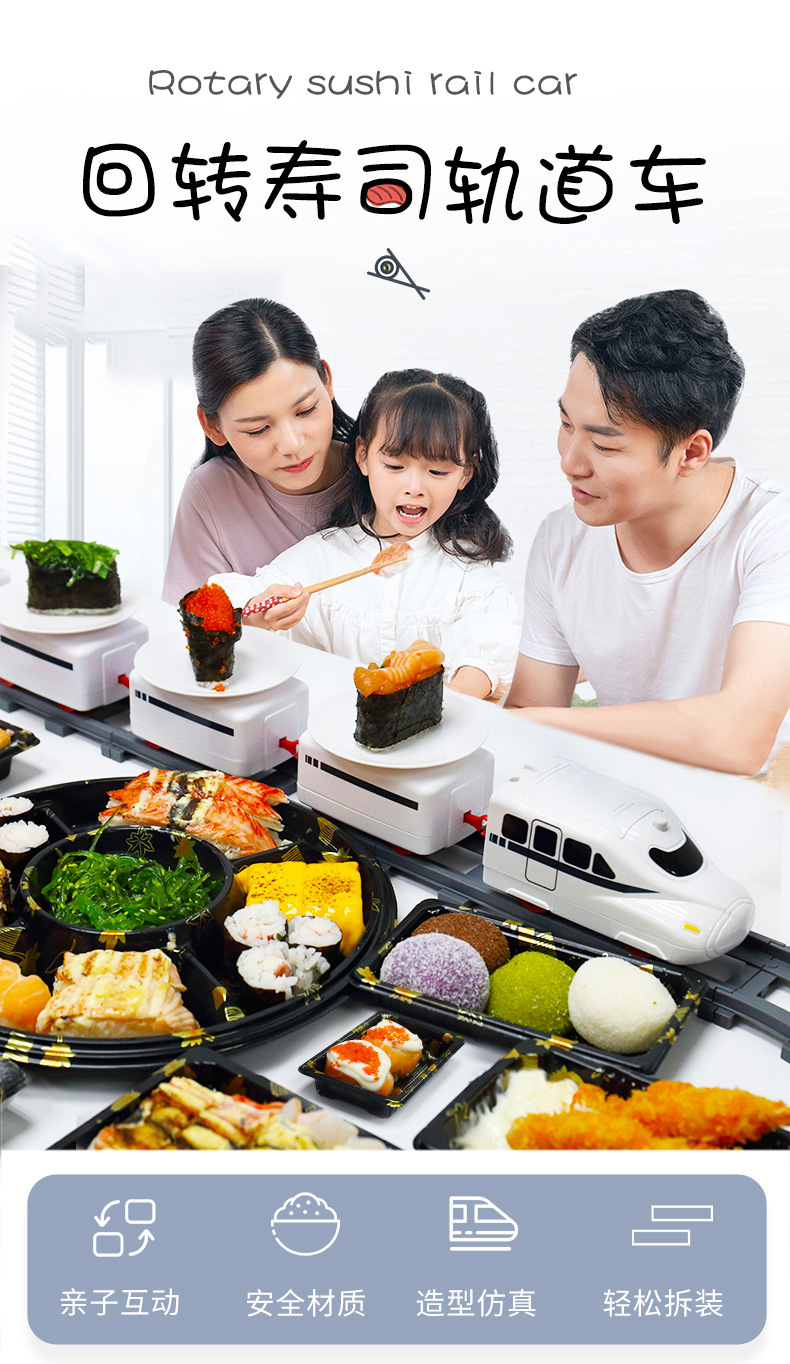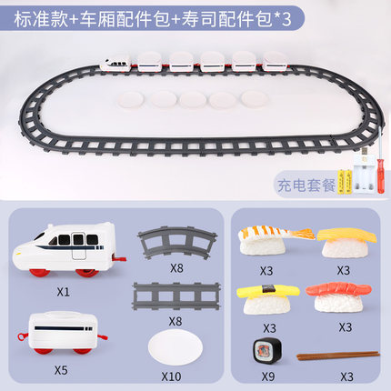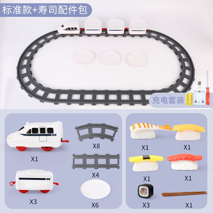 • [표준] 3 섹션 회전 열차 세트 + DIY 시뮬레이션 스시 가방 (충전 세트)
