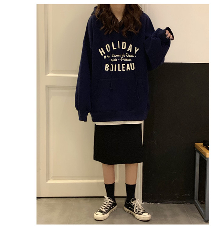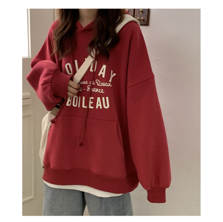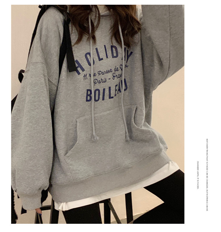 얇은 후드 티셔츠 여성 가을 ins2023 가을 새로운 느슨한 한국 스타일 까마귀 인터넷 연예인 트렌드 원피스 배송스토어 가기