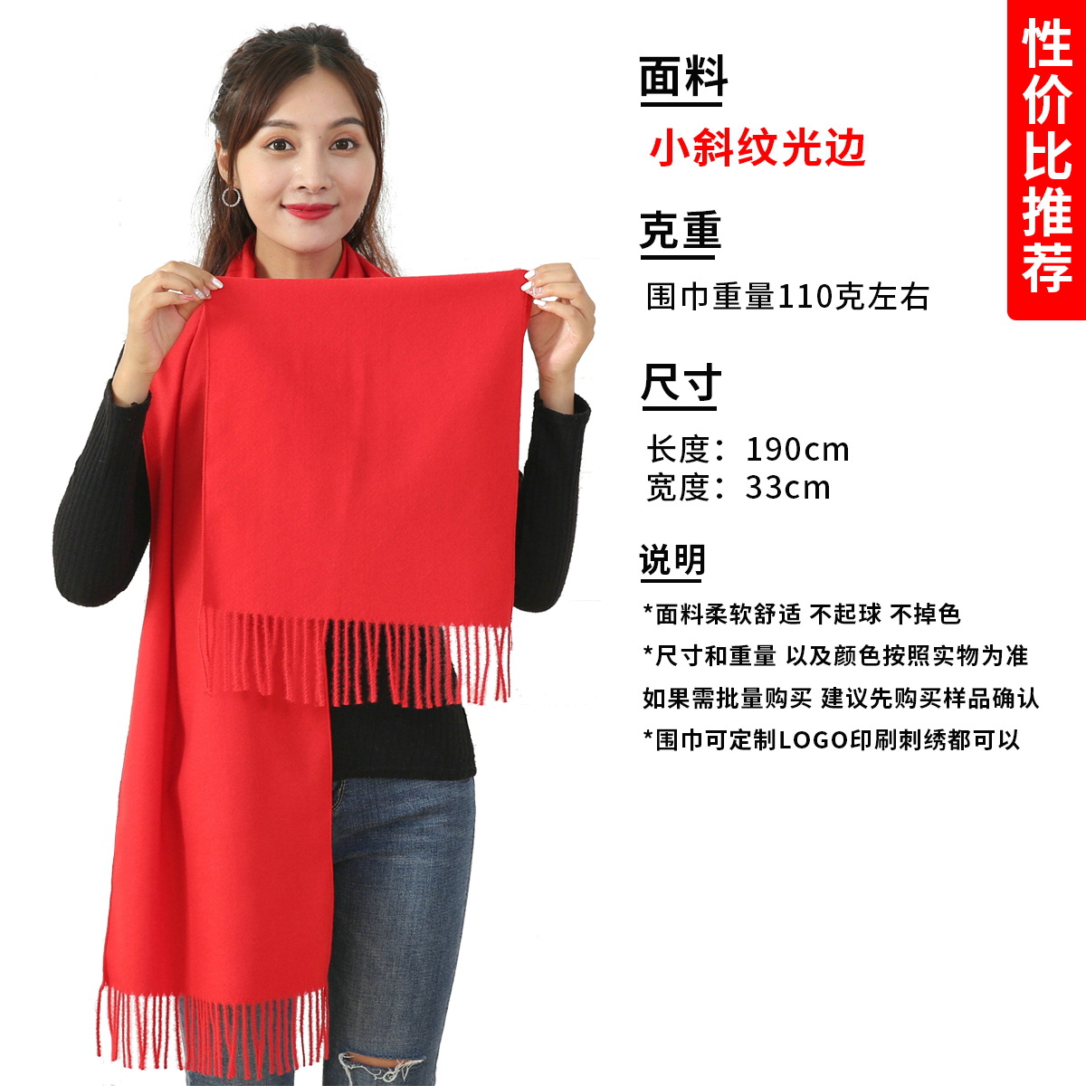 빨간 스카프 맞춤 로고 자수 연례 행사 스카프 동창회 중국 빨간 숄 인쇄