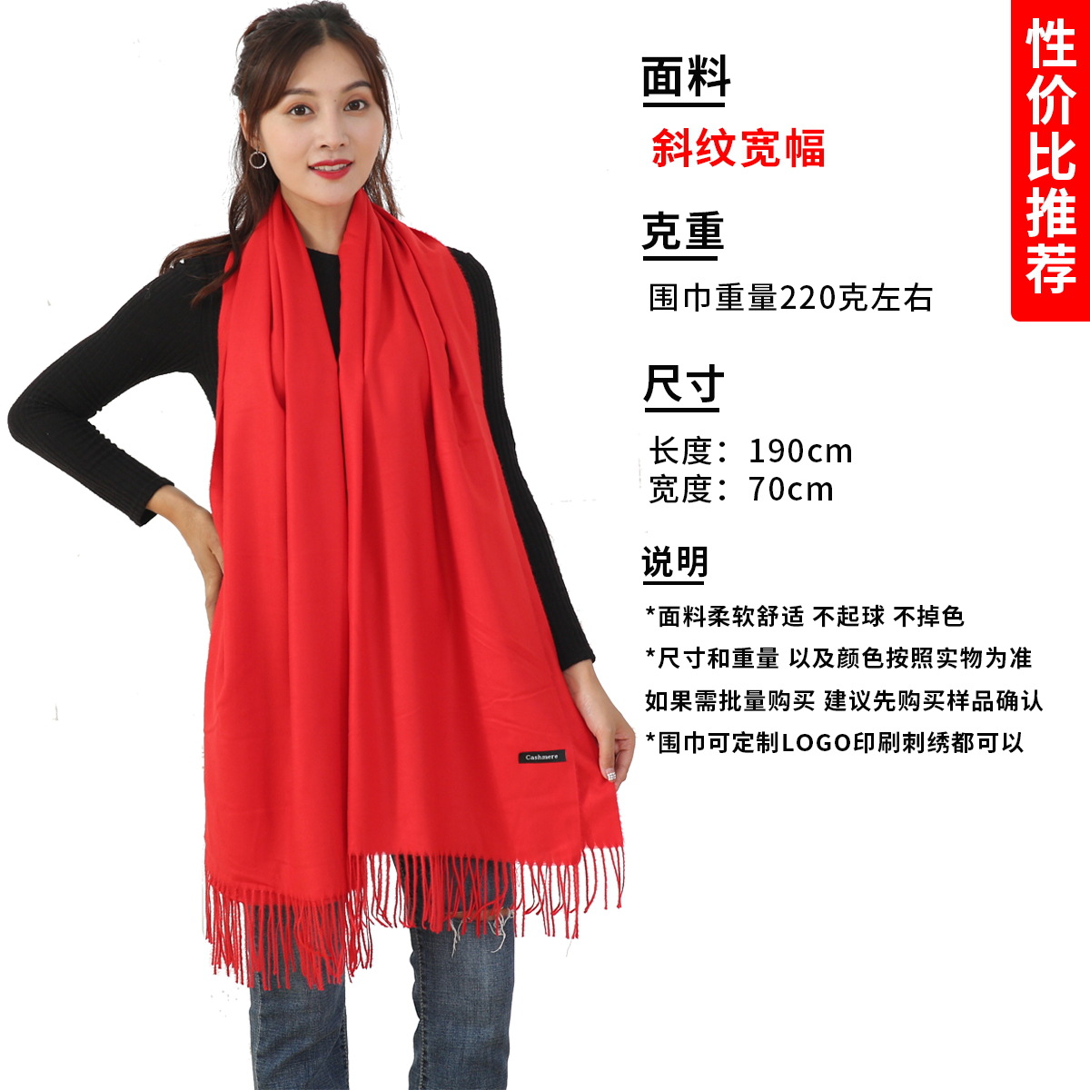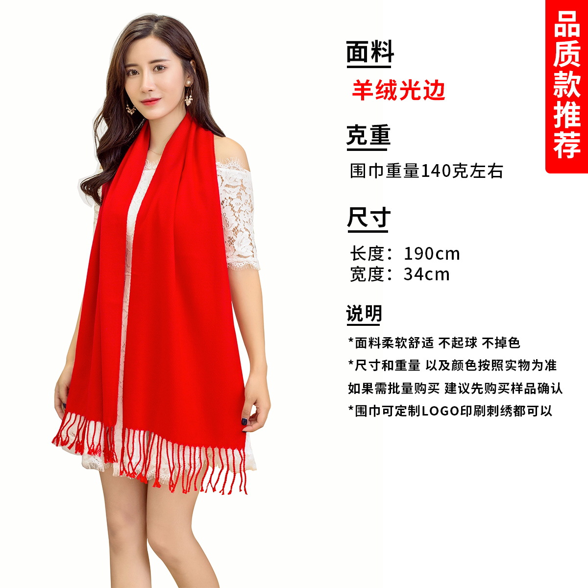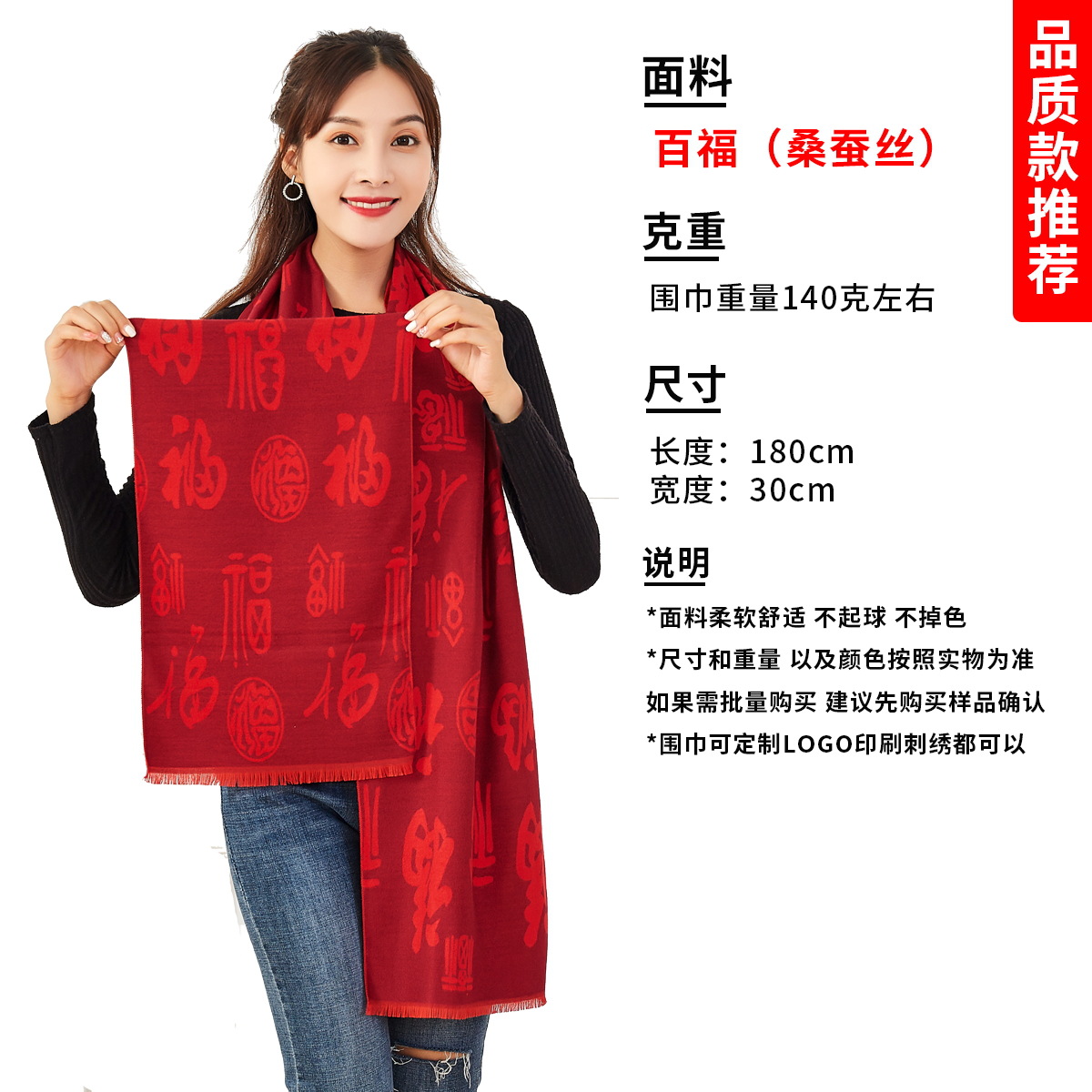 빨간 스카프 맞춤 로고 자수 연례 행사 스카프 동창회 중국 빨간 숄 인쇄스토어 가기