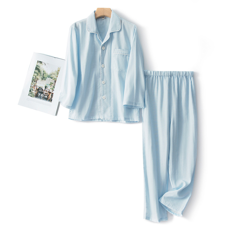 순면 일반 색상 어린이 더블 거즈 잠옷 세트 커플 부모-자식 가정 옷 도매 머리카락의 세대