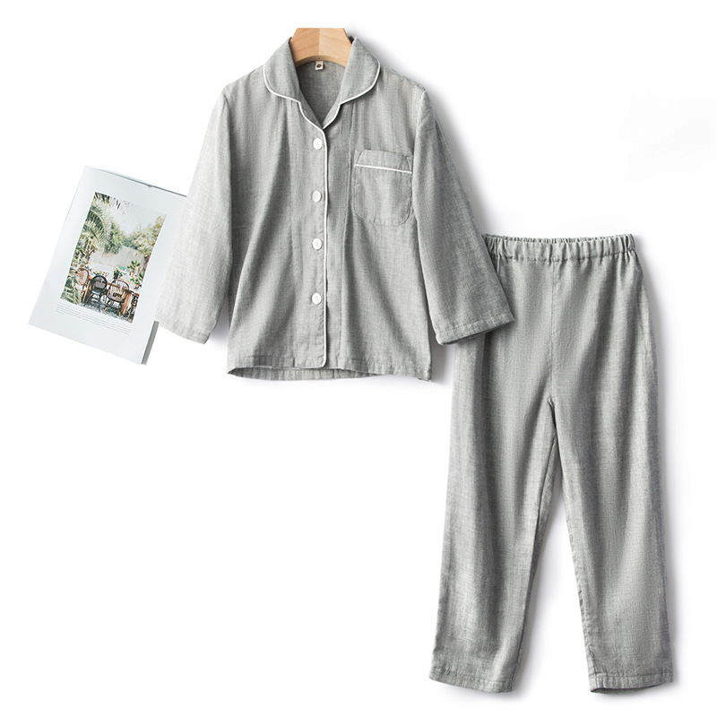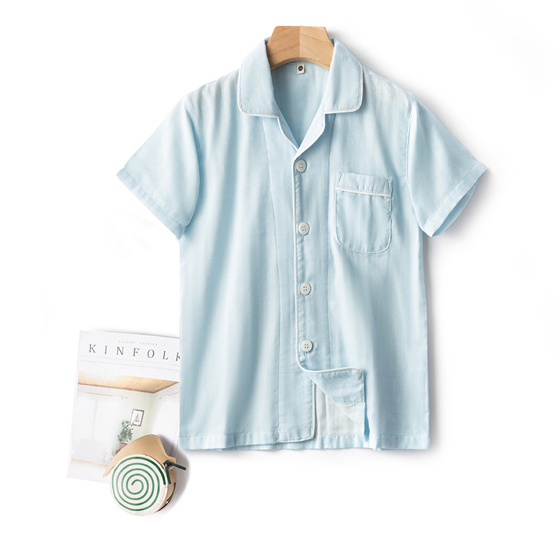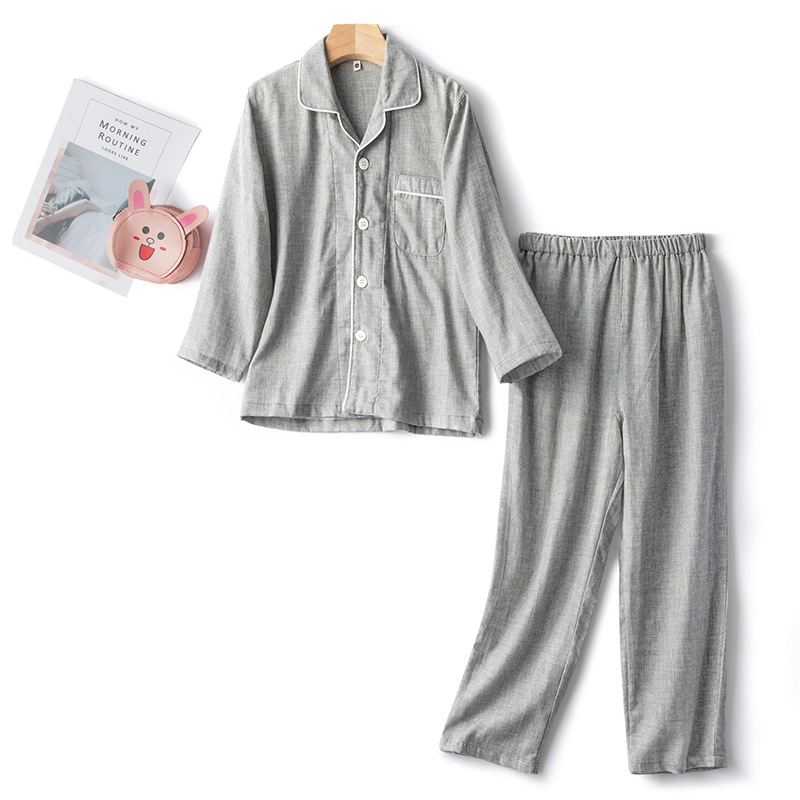 순면 일반 색상 어린이 더블 거즈 잠옷 세트 커플 부모-자식 가정 옷 도매 머리카락의 세대스토어 가기