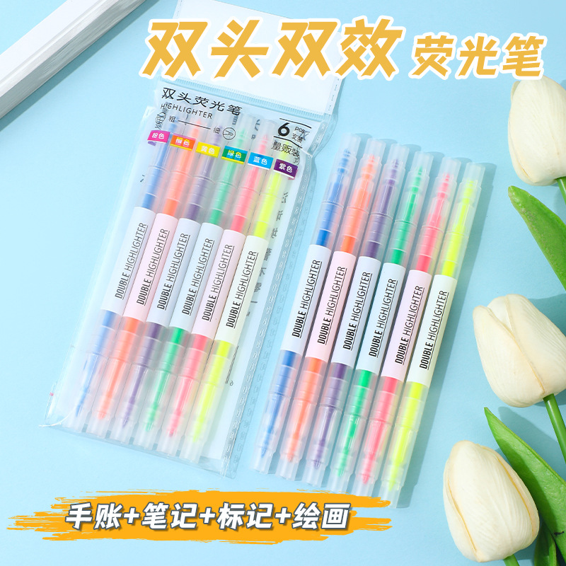 내구성 6 팩 더블 헤드 형광펜 마킹 마커 학생 낙서 펜 캔디 컬러 페인팅 수채화 펜