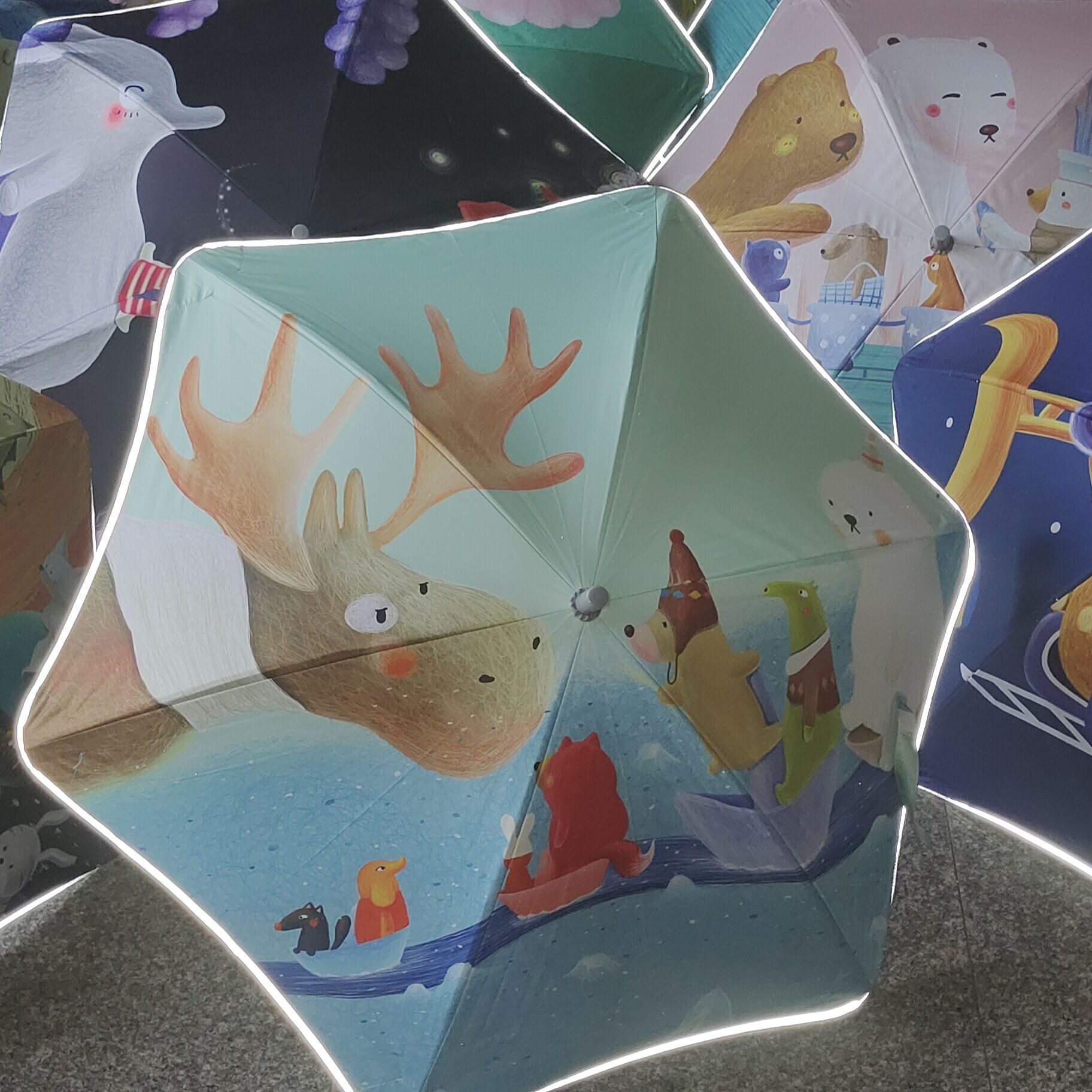 3-12 세 만화 둥근 어린이 우산 비닐 태양 보호 유치원 어린이 태양 우산 인쇄 로고 광고스토어 가기