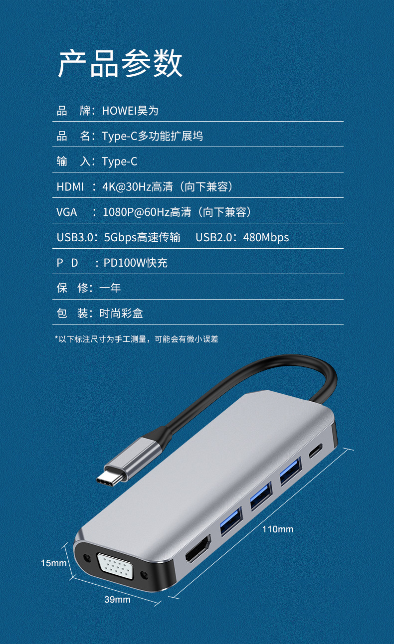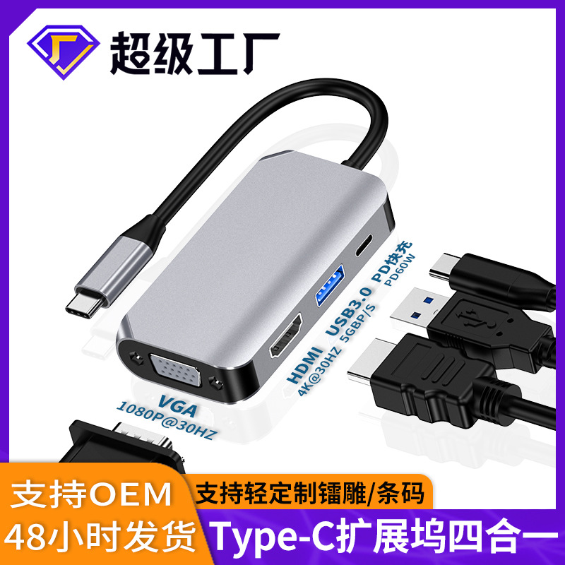 크로스 보더 type-c 도킹 스테이션은 USB 스플리터를 hdmi vga 허브 다기능 케이블로 확장합니다.스토어 가기