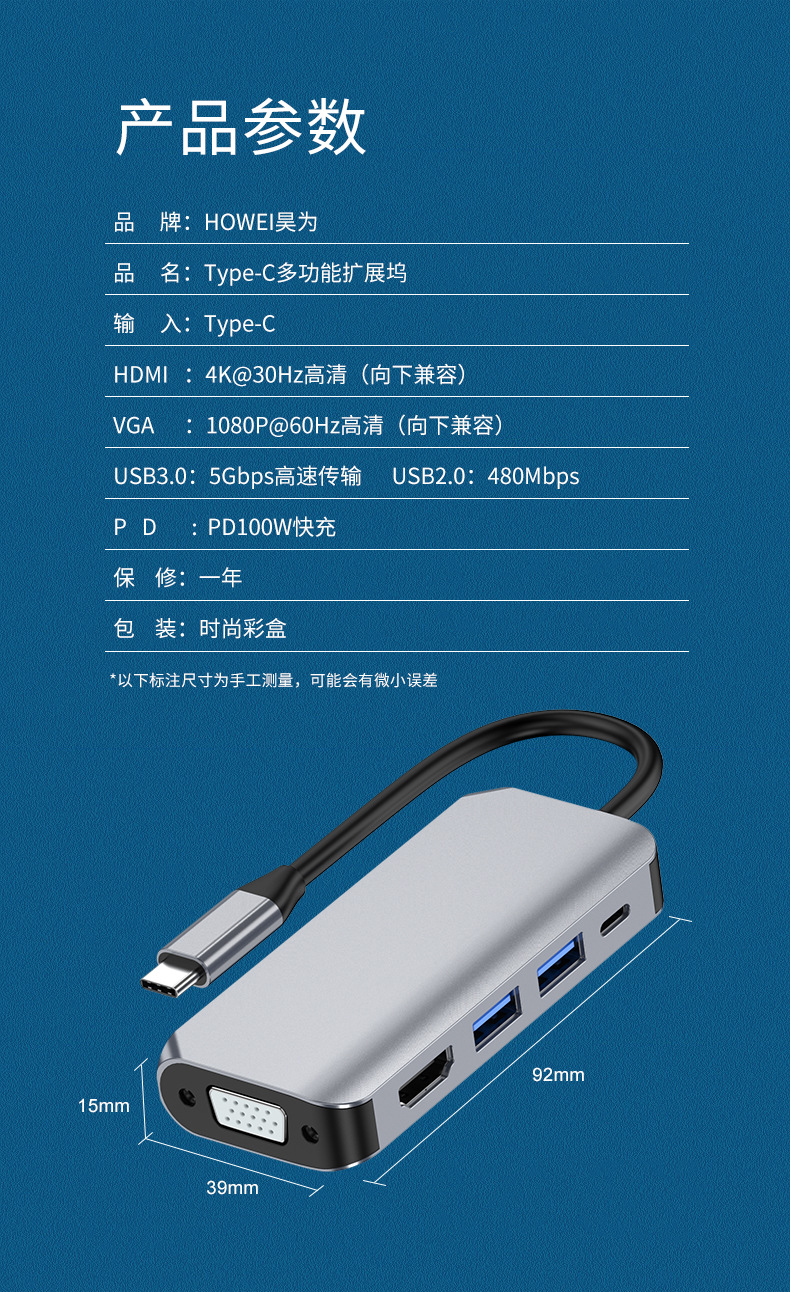 • HDMI + VGA + USB3.0 + USB2.0 * 2 + PD (하나로 6 개)