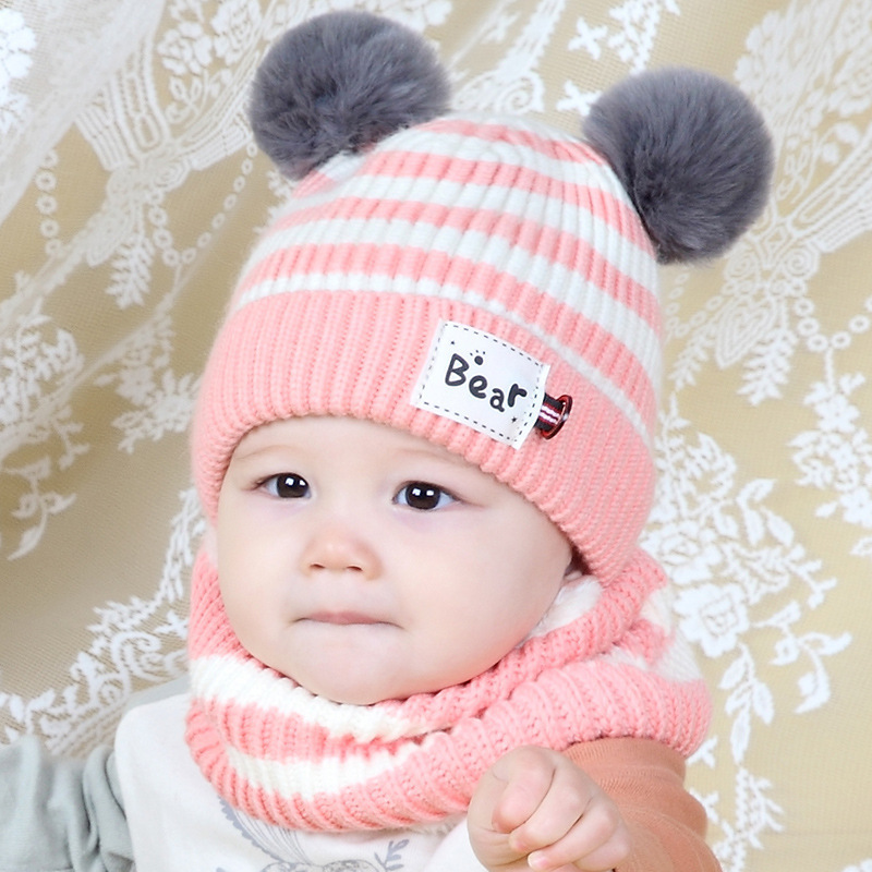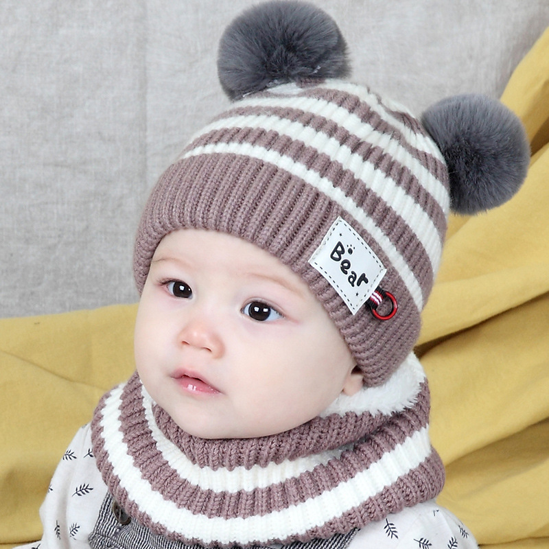 品名:条纹双球加绒套帽