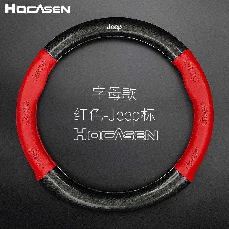 지프 스티어링 휠 커버에 적합 정품 가죽 가이드 그랜드 체로키 무료 게스트 라이트 핸들 커버 탄소 섬유 헤어