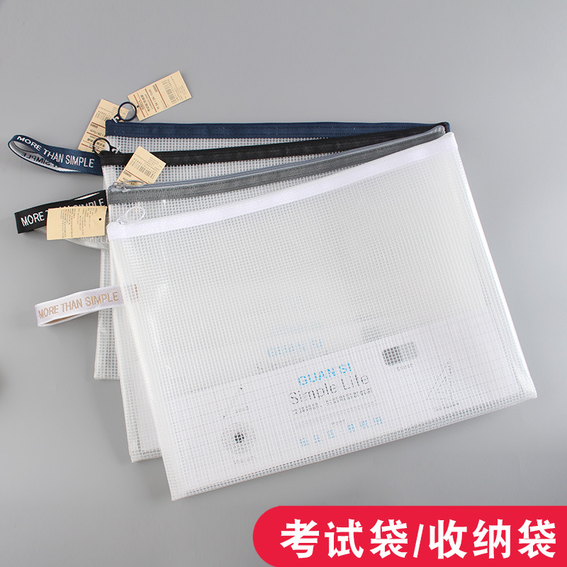 A4 파일 가방 투명 지퍼 백 그리드 테스트 용지 보관 파일 가방 학생 문구 시험용 대용량