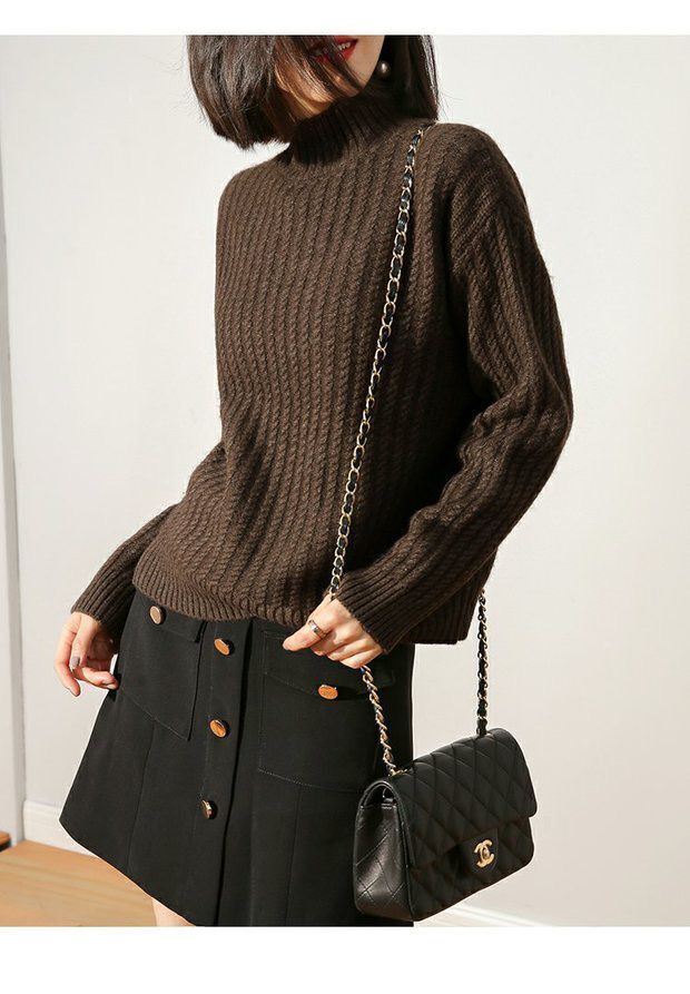 가을 겨울 신상 두꺼운 트위스트 니트 여성 하프 터틀넥 울 니트웨어 루즈핏 풀오버 숏 스타일 이너웨어 한국 스타일스토어 가기