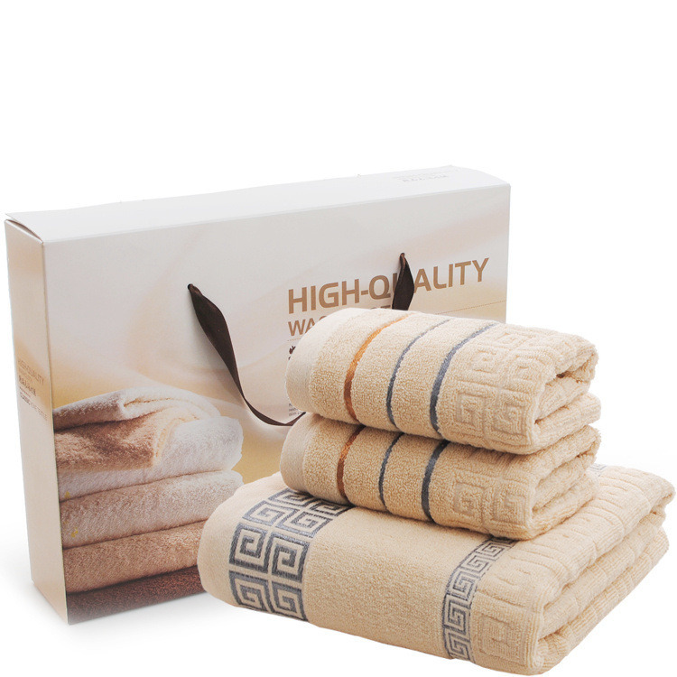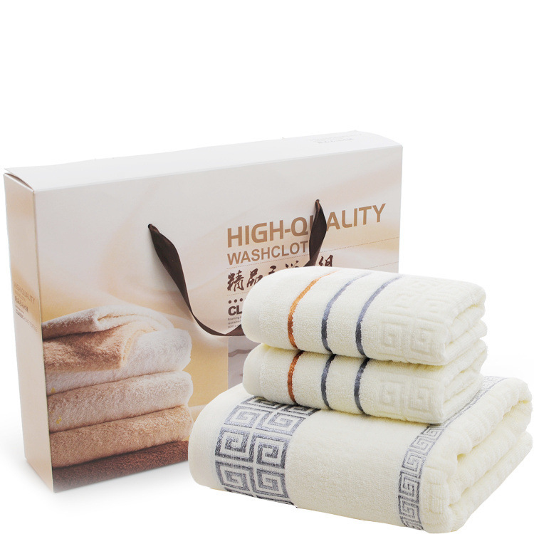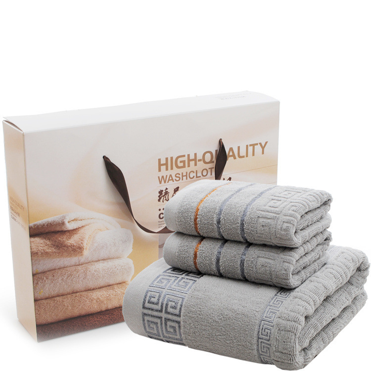 면 목욕 타올 두꺼운 큰 선물 비즈니스 선물 상자 로고 자수 성인 만리장성 격자 3 피스 세트