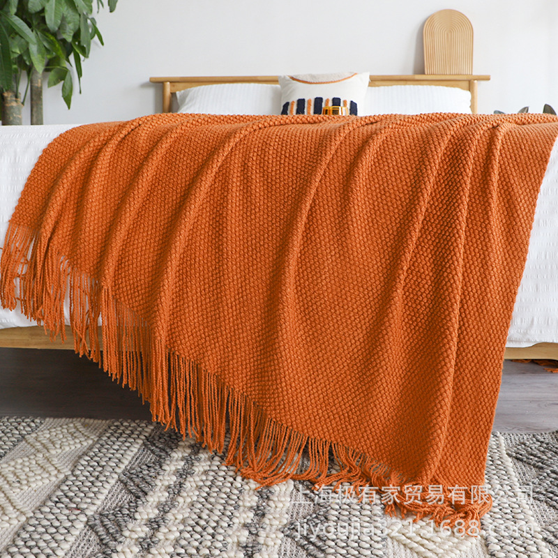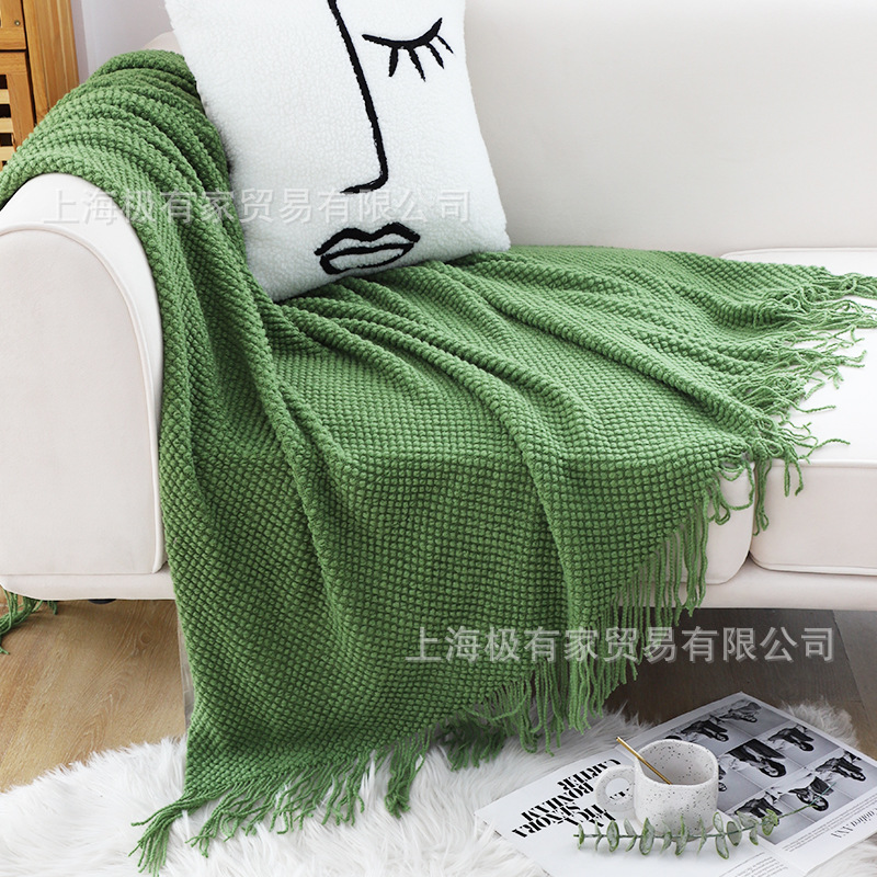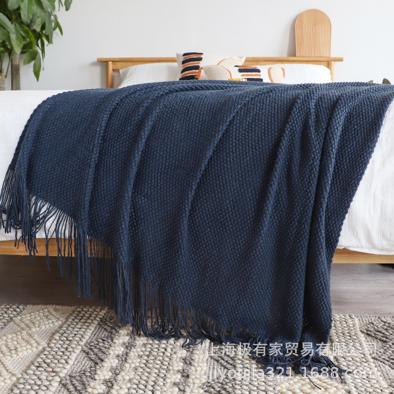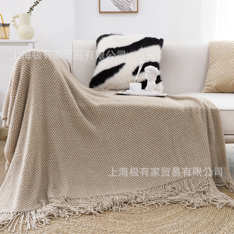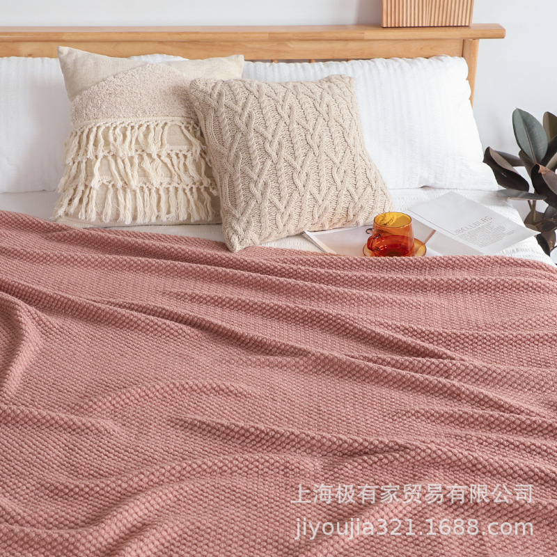 모란디 단색 니트 담요 홈스테이 침대 끝 장식 담요 침대 세트 두꺼운 낮잠 담요 숄 커버 담요 소파 담요