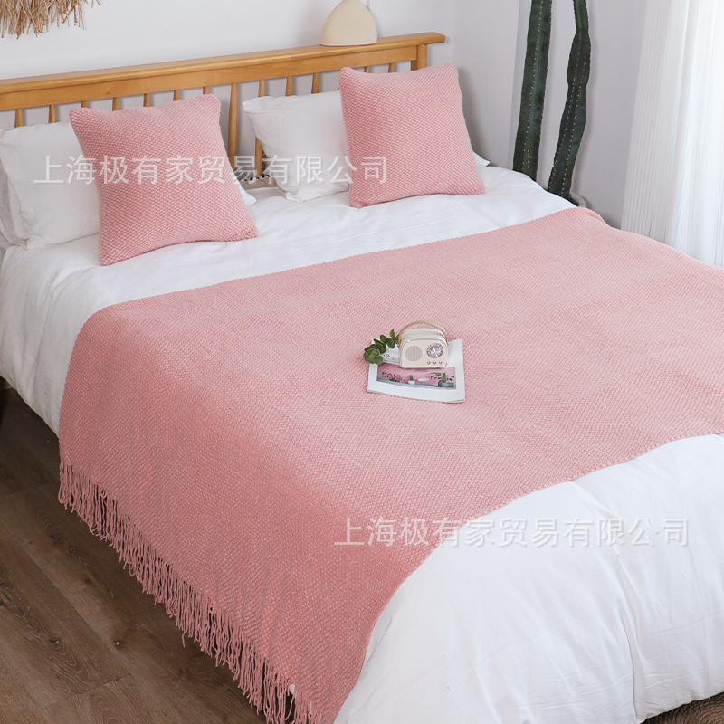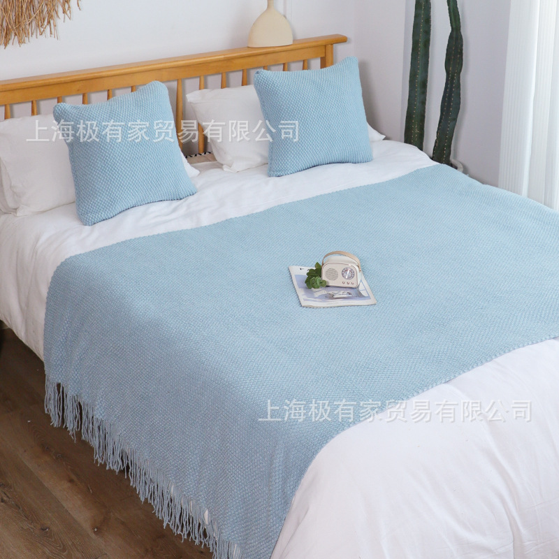모란디 단색 니트 담요 홈스테이 침대 끝 장식 담요 침대 세트 두꺼운 낮잠 담요 숄 커버 담요 소파 담요스토어 가기