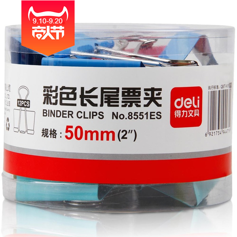 델리 8551ES 컬러 롱 테일 티켓 홀더 사무실 문구 50mm 부식 방지 다기능 클립 회계 티켓 홀더스토어 가기