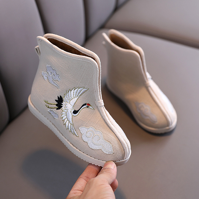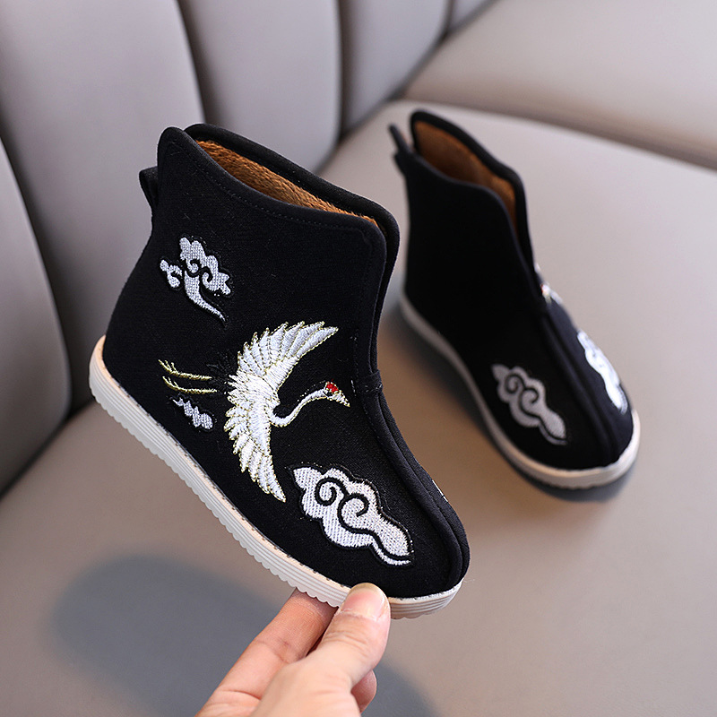 홈 어린이 따뜻한 면화 신발 어린이 크레인 자수 신발 골동품 부츠 Hanfu 신발 여성의 중국 스타일 자수 신발 남성용스토어 가기