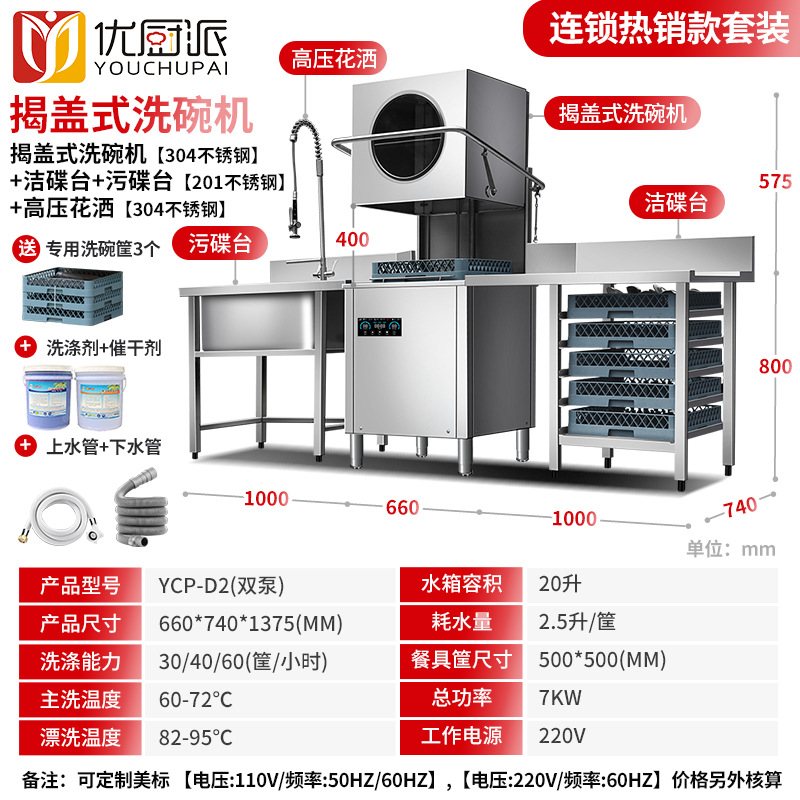 • 7KW 식기세척기 + 접시세척대 + 더러운 접시대 [201 스테인리스] + 샤워기