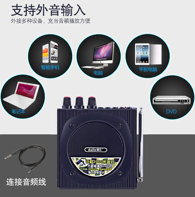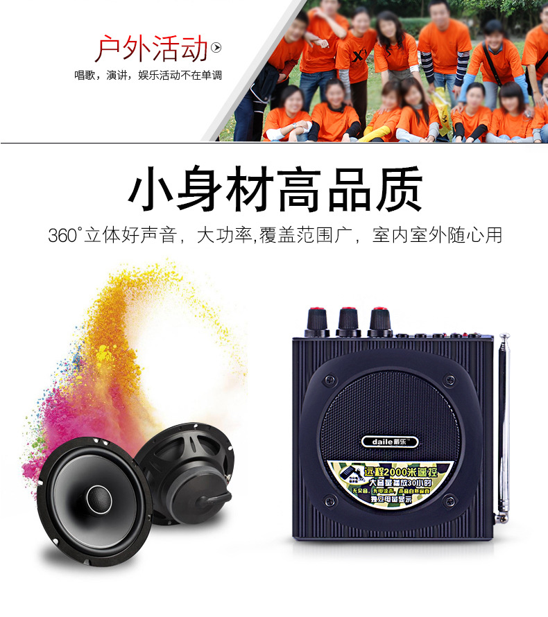 说明:充电时间8-10小时,可播放音乐4-10小时,使用喊话时间:15-20小时