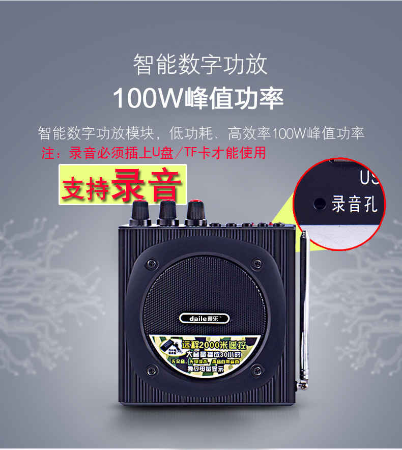 支持U盘,TF卡,带录音,收音,外音输入,可外接喇叭.