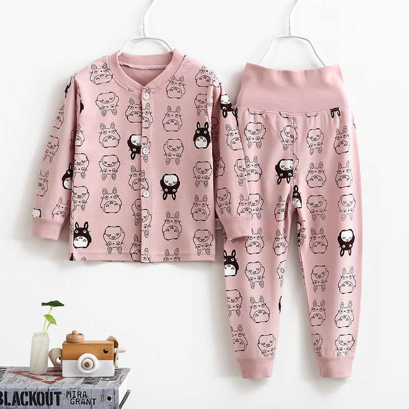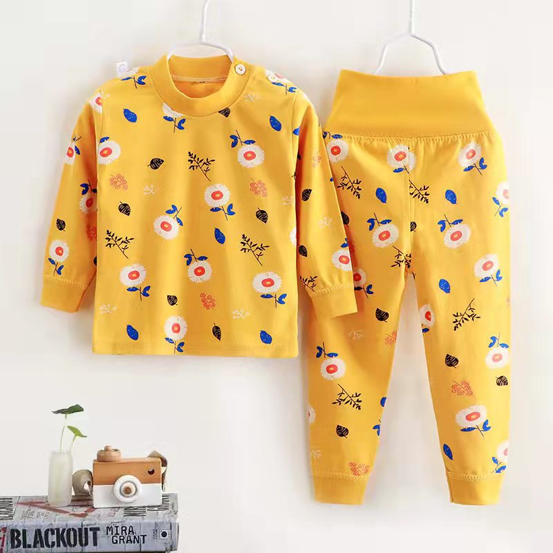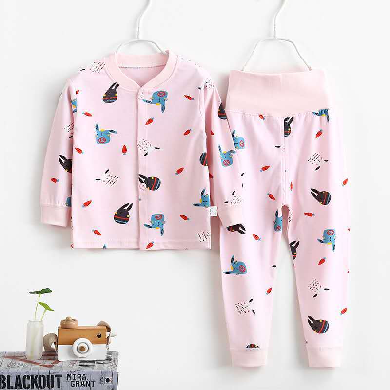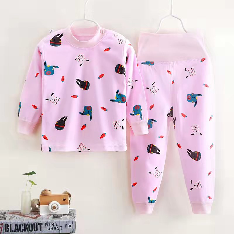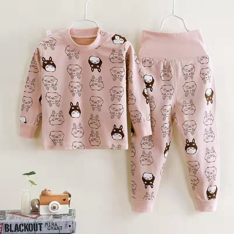 여자 가을 어린이 속옷 세트 0-1-2-3-4 세 높은 허리 긴 소매 가정 옷 아기 옷