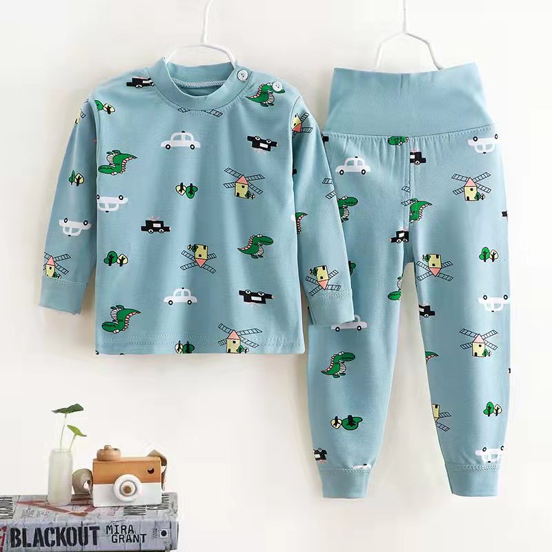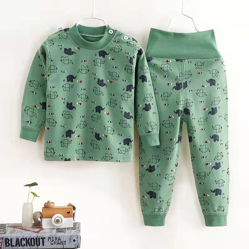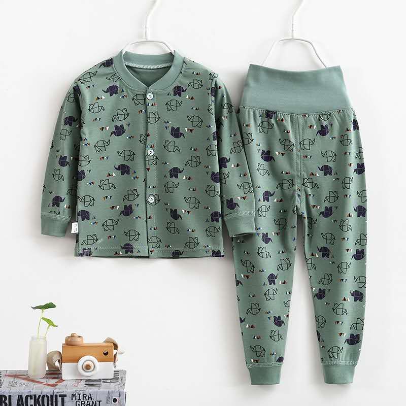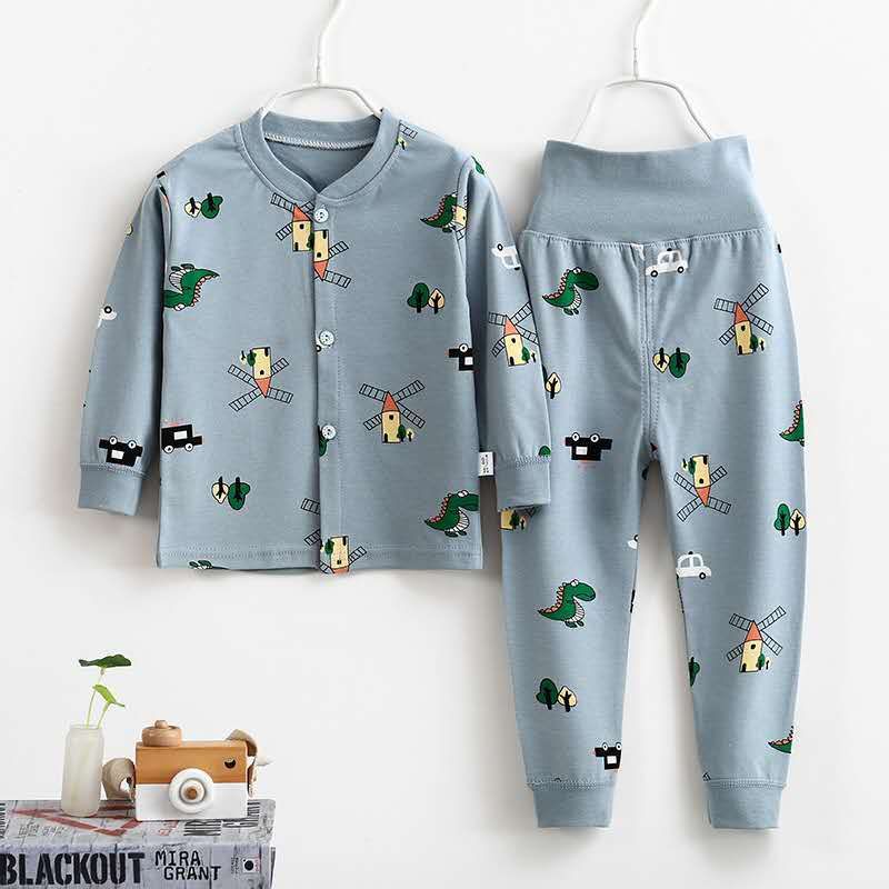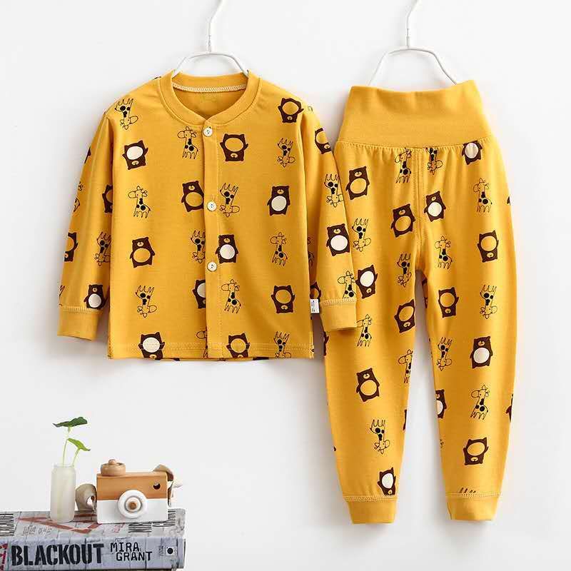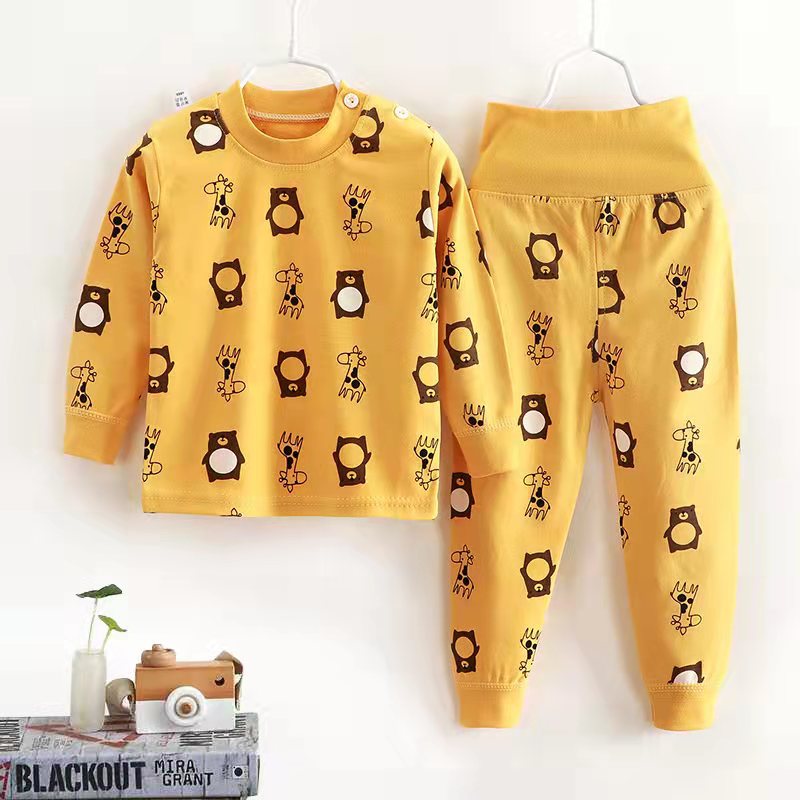 여자 가을 어린이 속옷 세트 0-1-2-3-4 세 높은 허리 긴 소매 가정 옷 아기 옷
