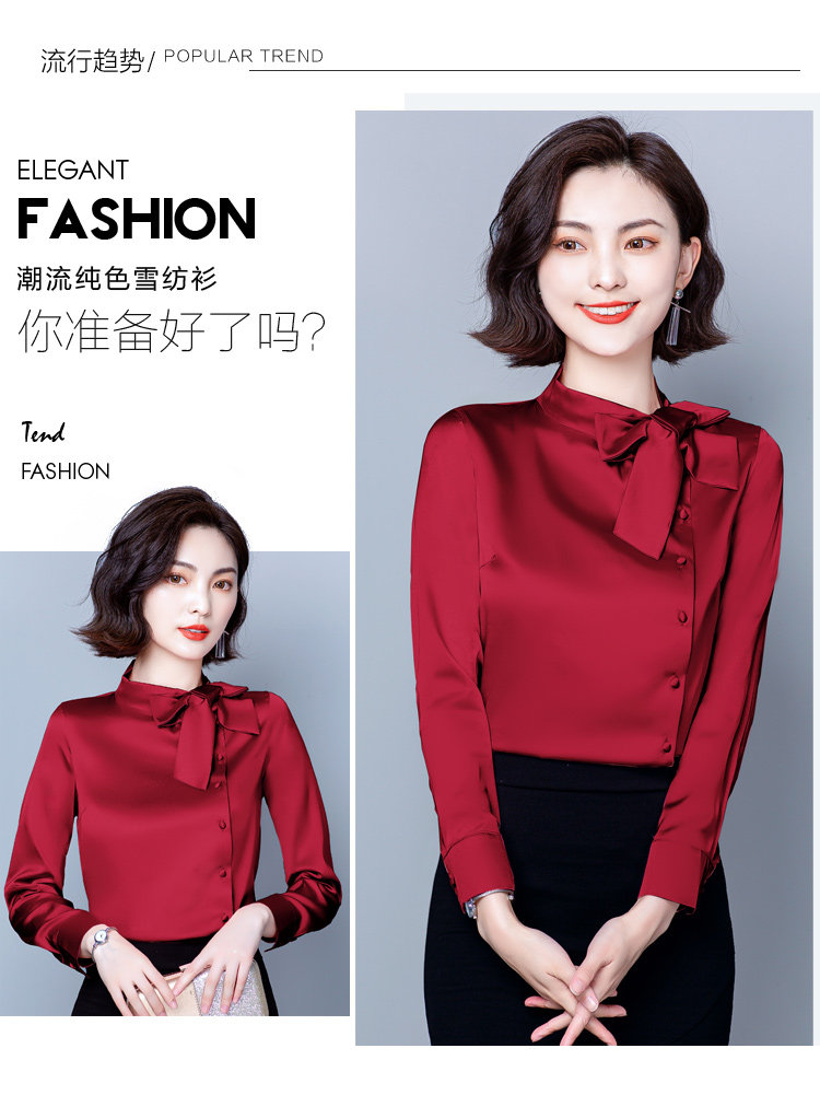 시뮬레이션 실크 긴팔 쉬폰 셔츠 여성 가을 의류 2020 새로운 가을 보우 탑 패션 작은 셔츠 도매스토어 가기