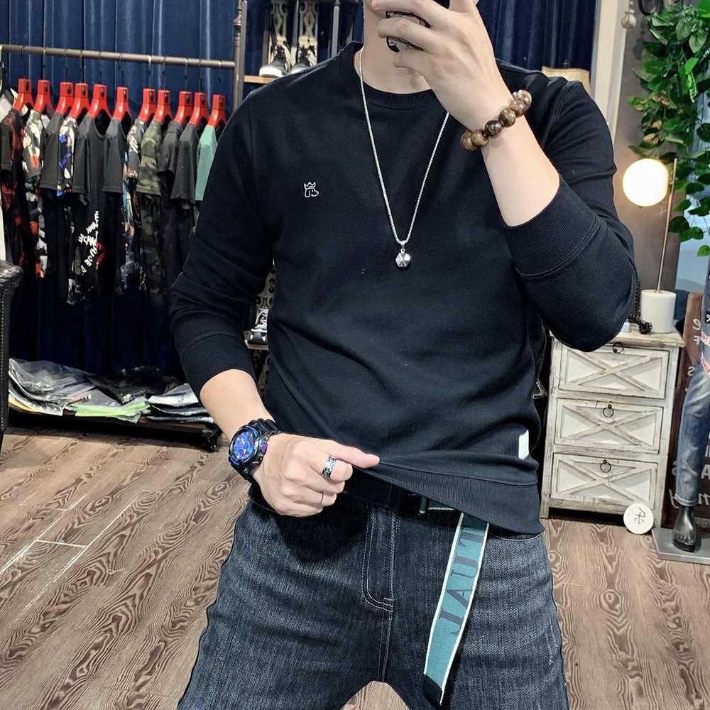 남자 크루 넥 스웨터 남자 2024 가을 새 자수 한국 스타일 슬림 핏 풀오버 트렌디 남자 가을베이스 셔츠스토어 가기