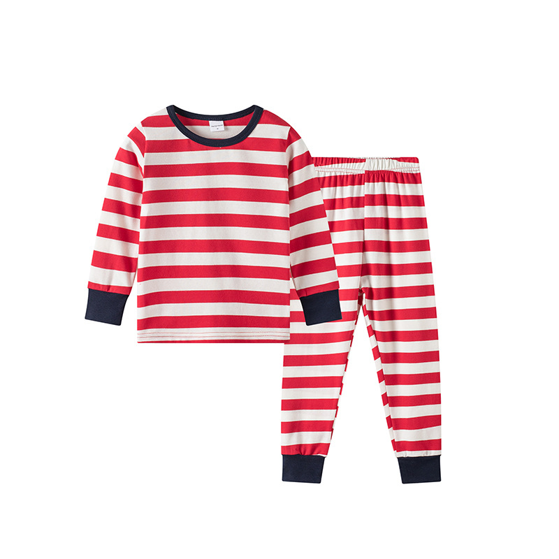 봄과 가을 줄무늬 잠옷 크리스마스 새해 가정 옷 소년과 소녀 가을 옷 면 속옷 아이 잠옷