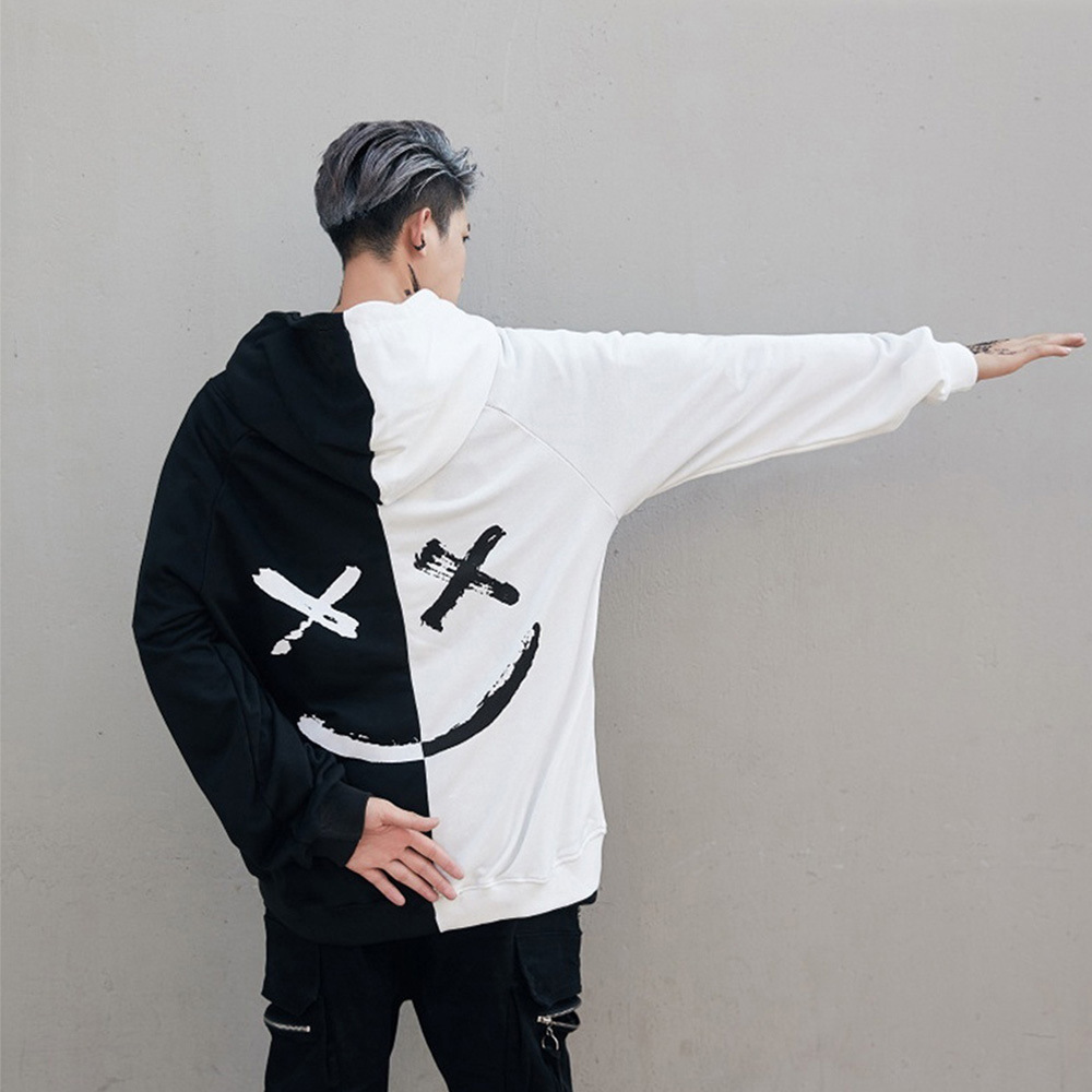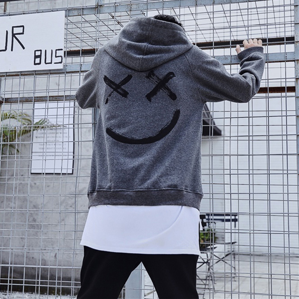 국경 간 대외 무역 남자의 봄과 가을 레저 패션 컬러 매칭 웃는 얼굴 스웨터 남자의 긴 소매 스포츠 후드 재킷 남자 코트스토어 가기